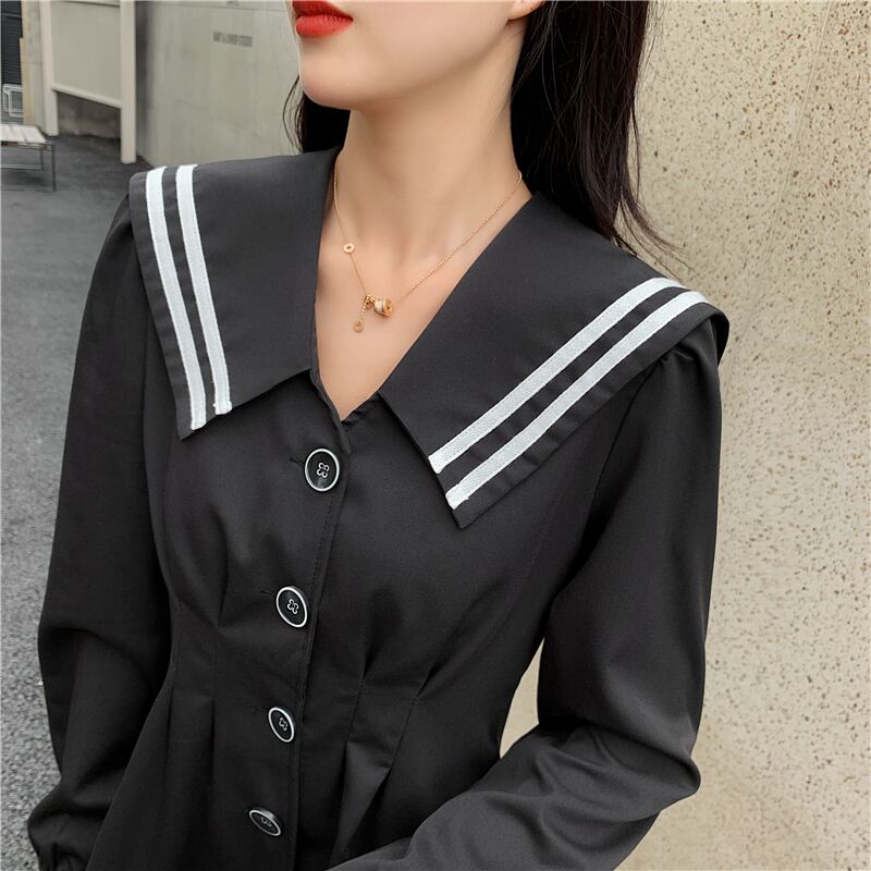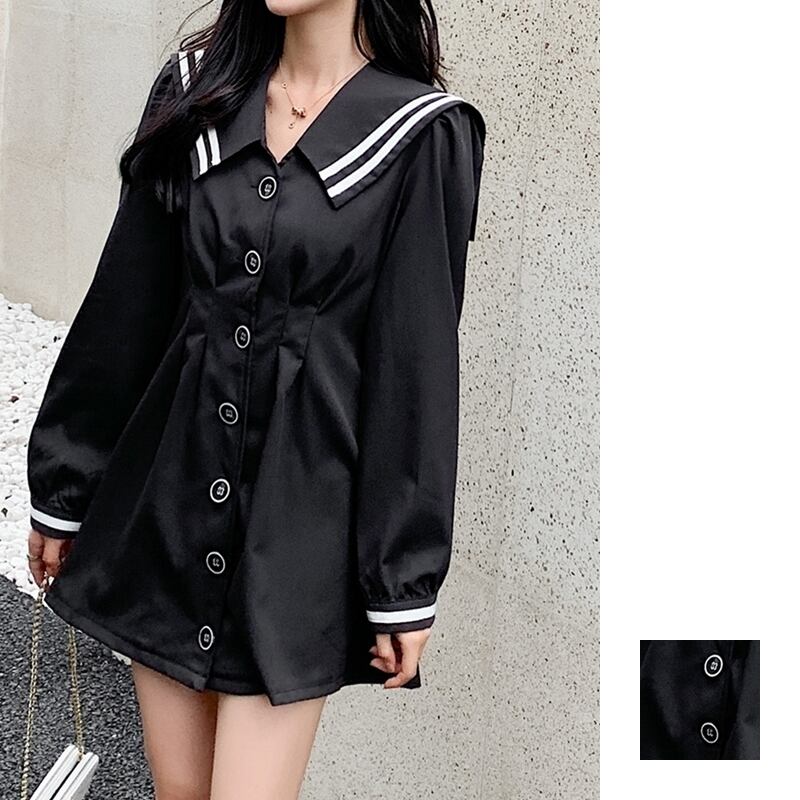 セーラー襟でライン使いがマリンライクな大人可愛いデザイン。
