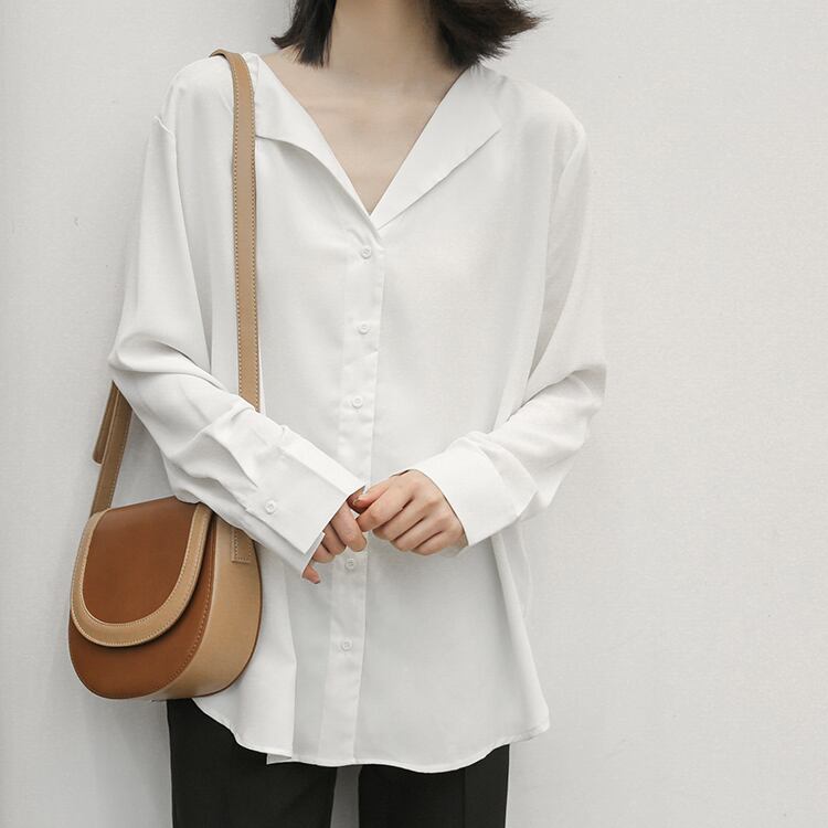 どこかルーズな落ち感のある無地の長袖ブラウスが登場♪
