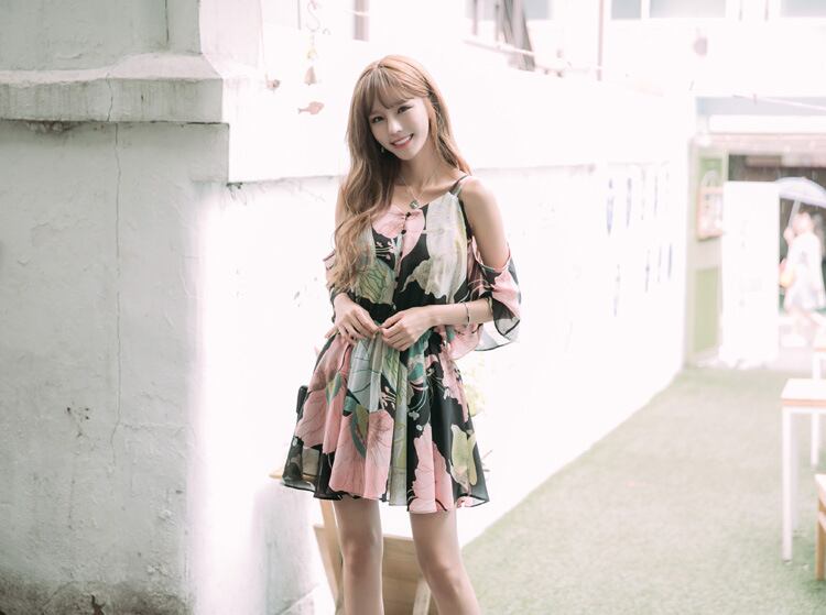 フレアミニのシルエットが可愛い花柄ワンピースが登場しました!