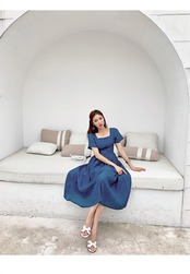 くすみカラーなブルーで子供っぽさをオフしたおすすめサマーワンピです♪