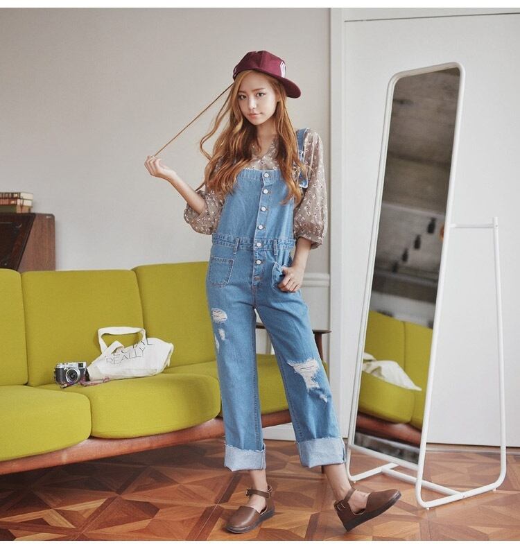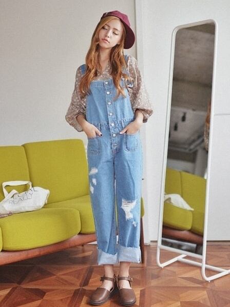 レッグラインにダメージ加工をあしらったオールインワン♪