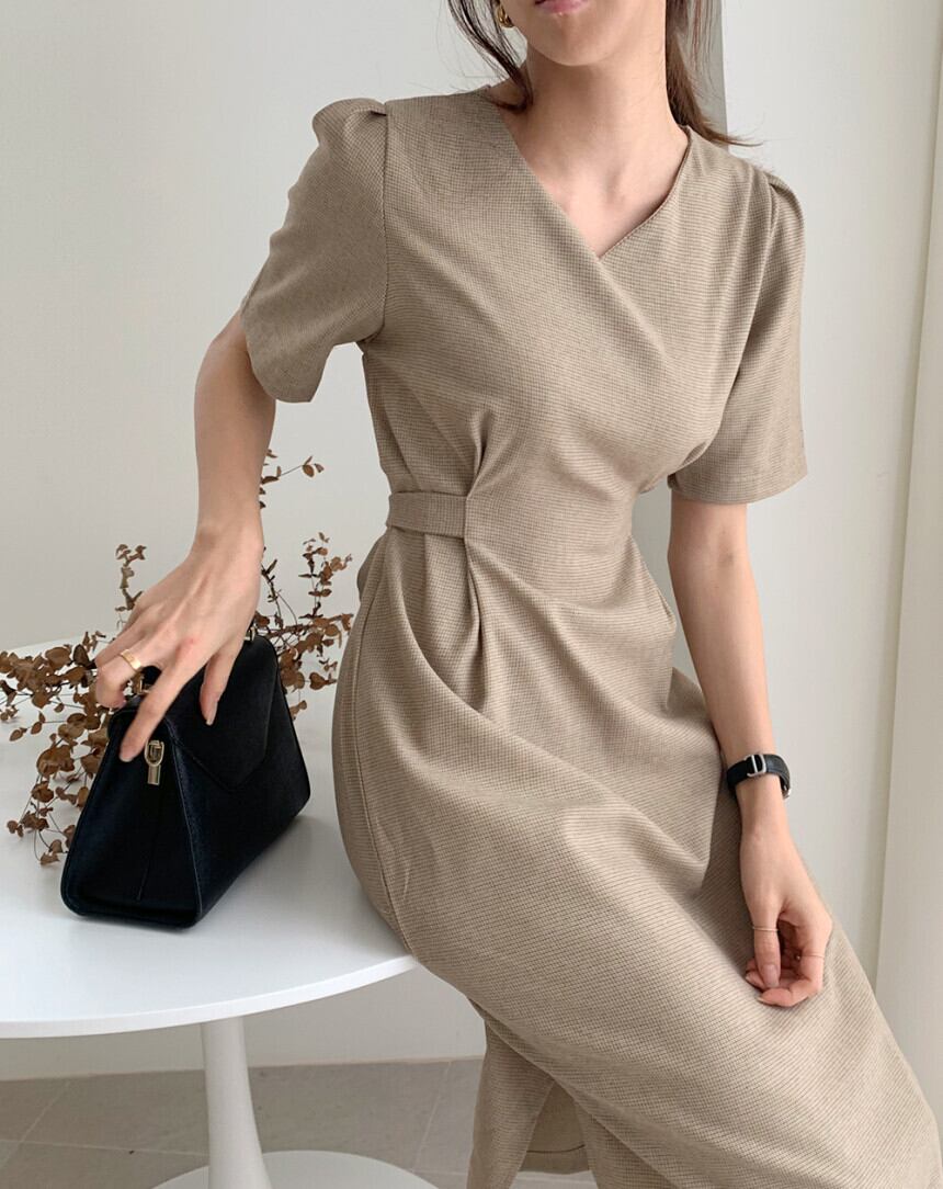シンプルな無地デザインの半袖ワンピースが登場☆