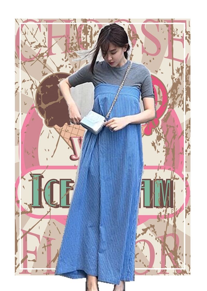 こまかなストライプ柄とワイドレッグでゆるさとすっきりさのミックスデザインに。
