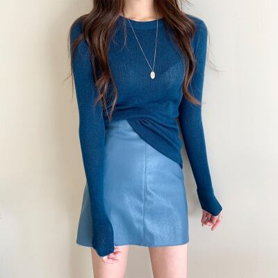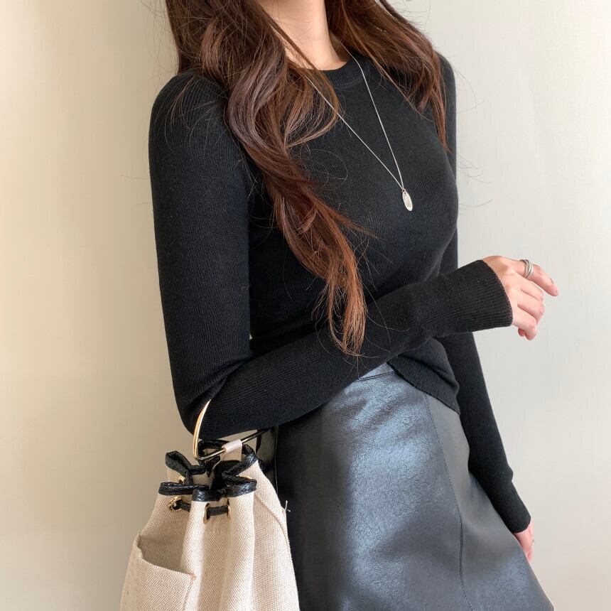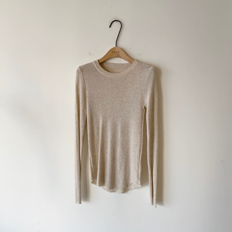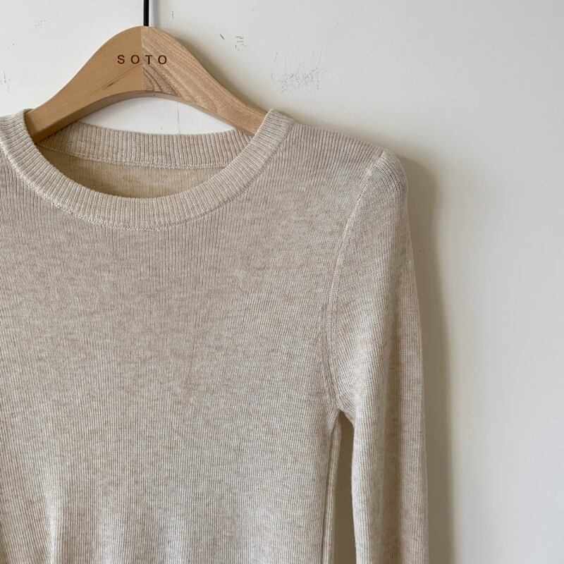 シンプルな無地、クルーネック、長袖のヘビロテ確定トップスです♪