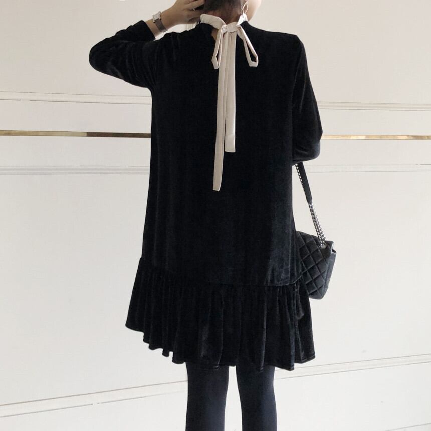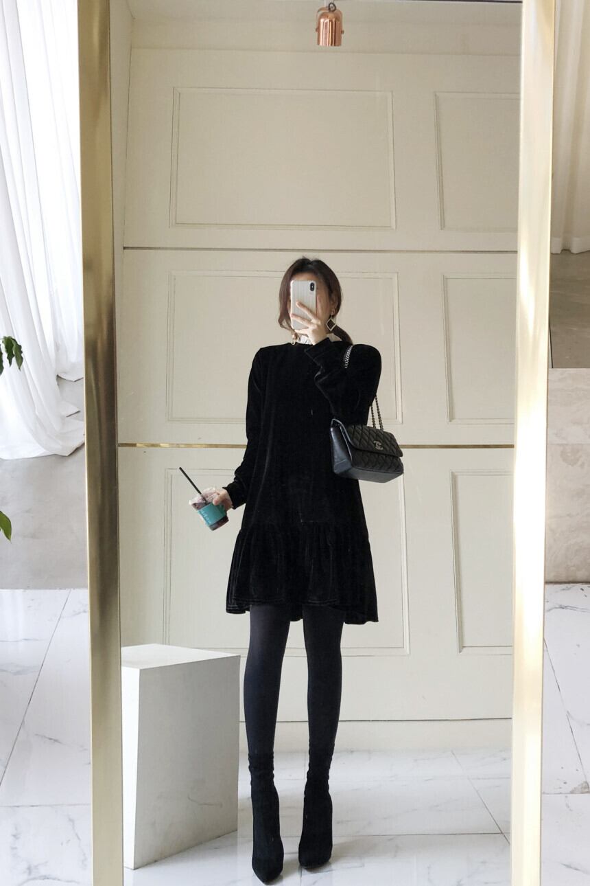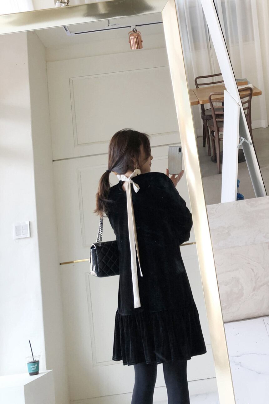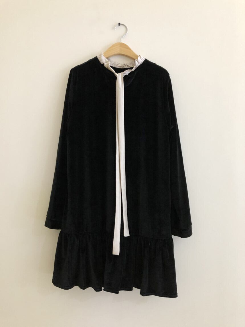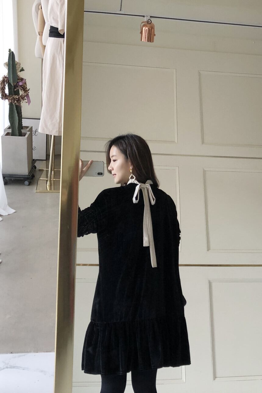 ブラックカラーでまとめたクラシカルなワンピースが登場しました。