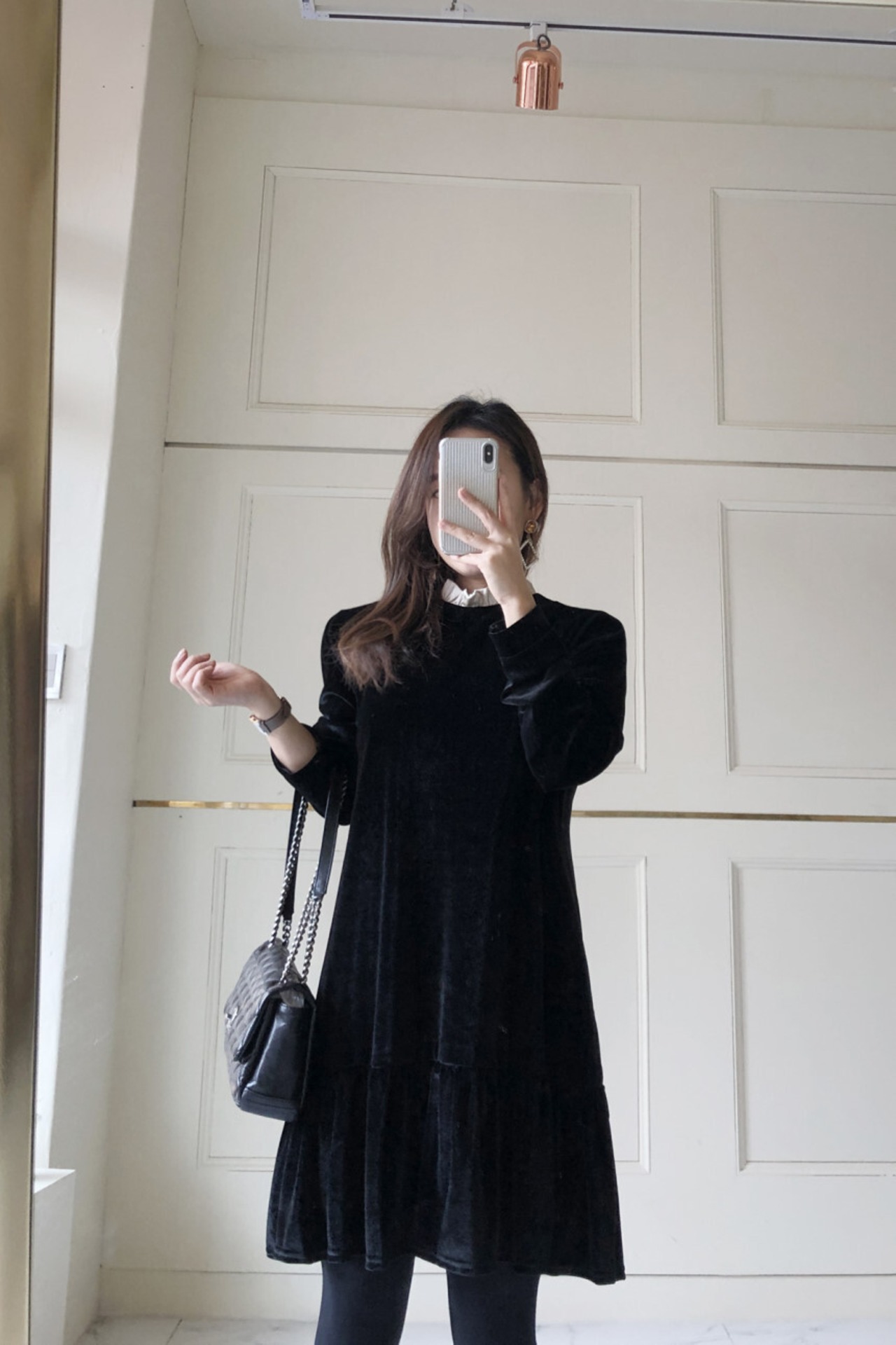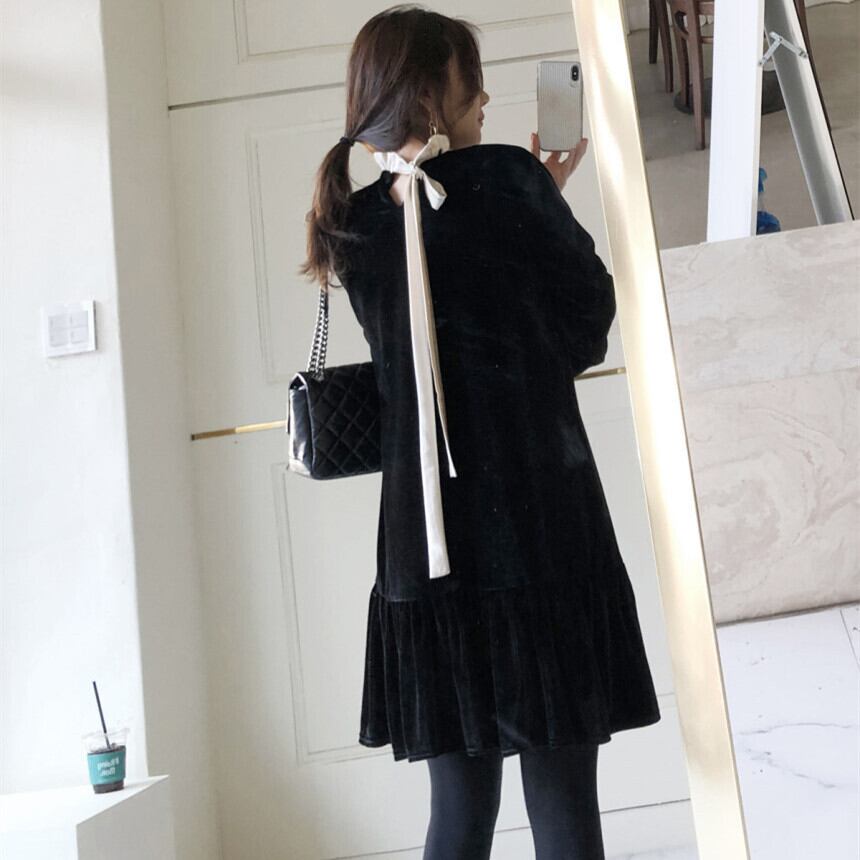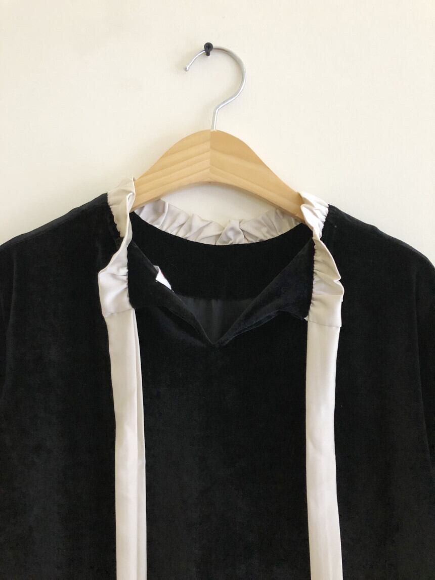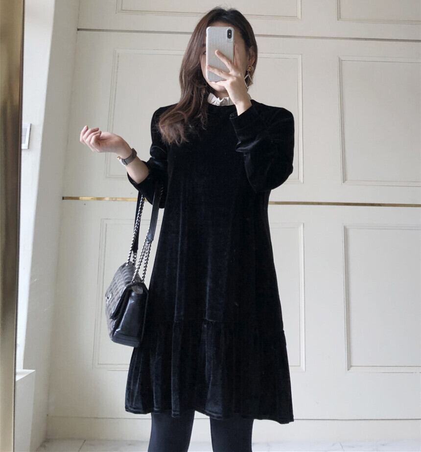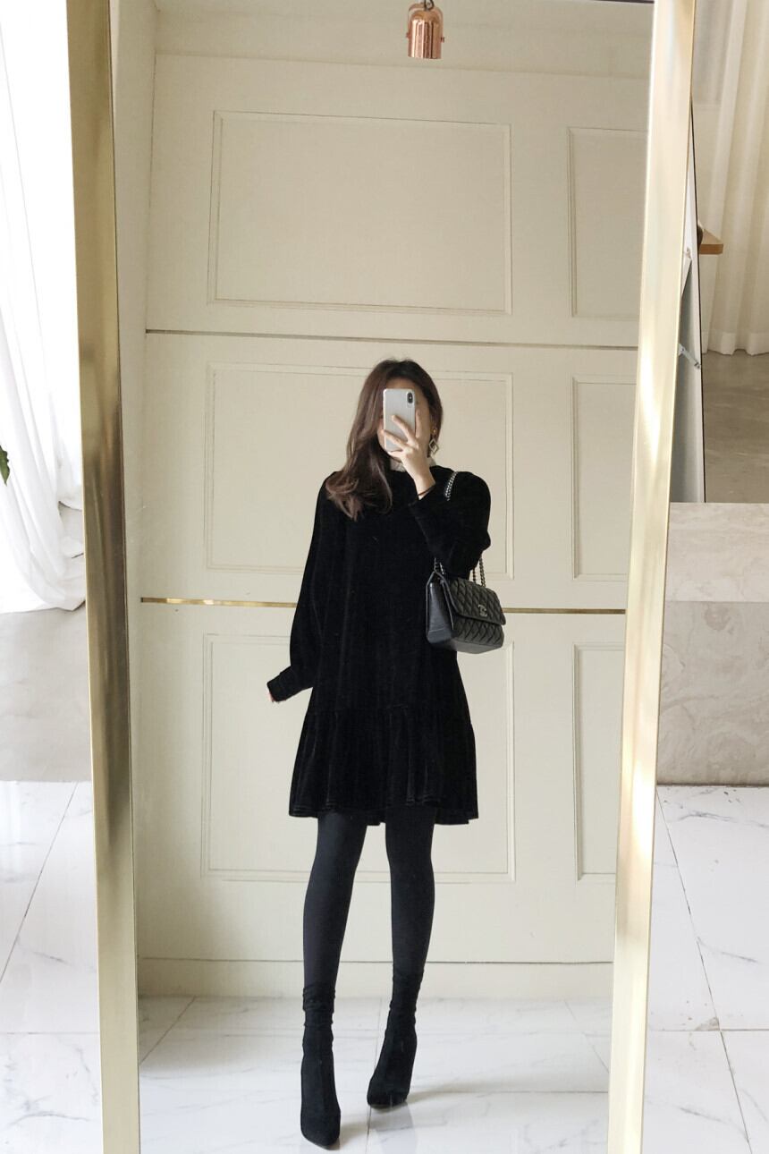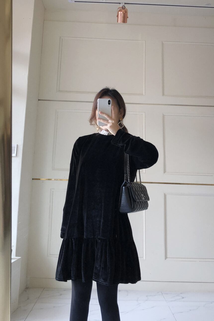 ブラックカラーでまとめたクラシカルなワンピースが登場しました。