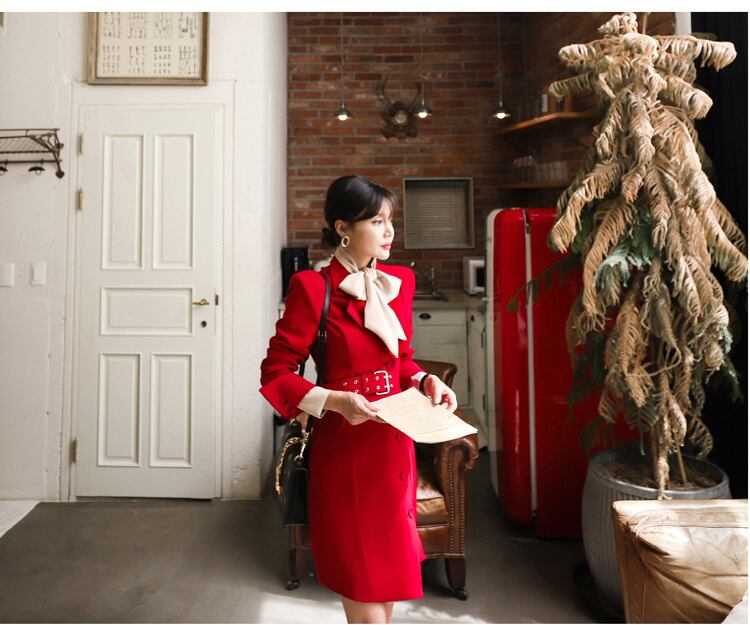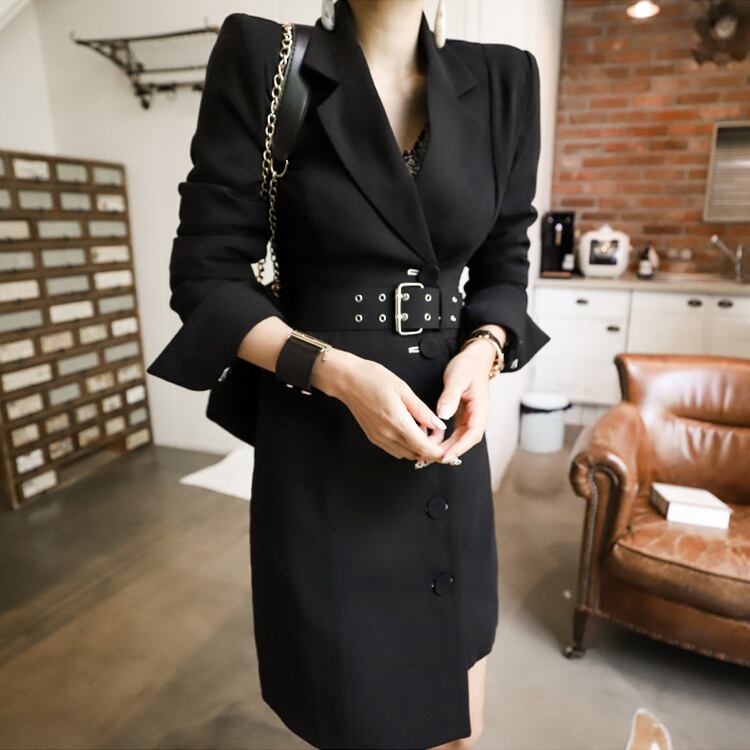 ワンカラーとベルトがマッチしたデザイン無地ロングジャケット♪