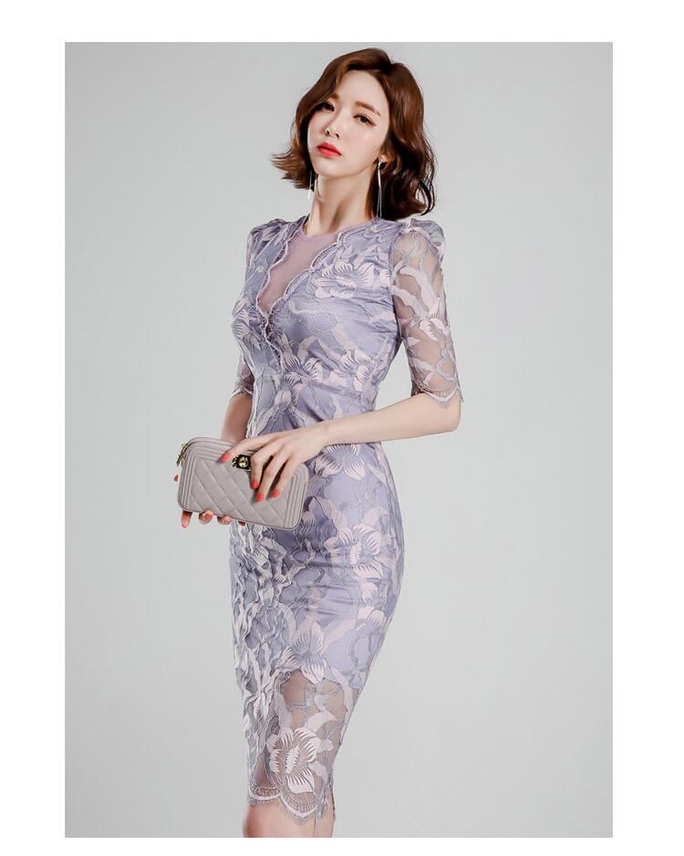 フローラル柄のレースを重ねたひざ丈のタイトワンピース♪