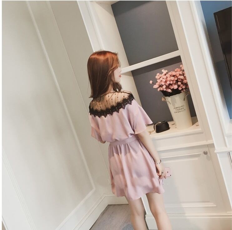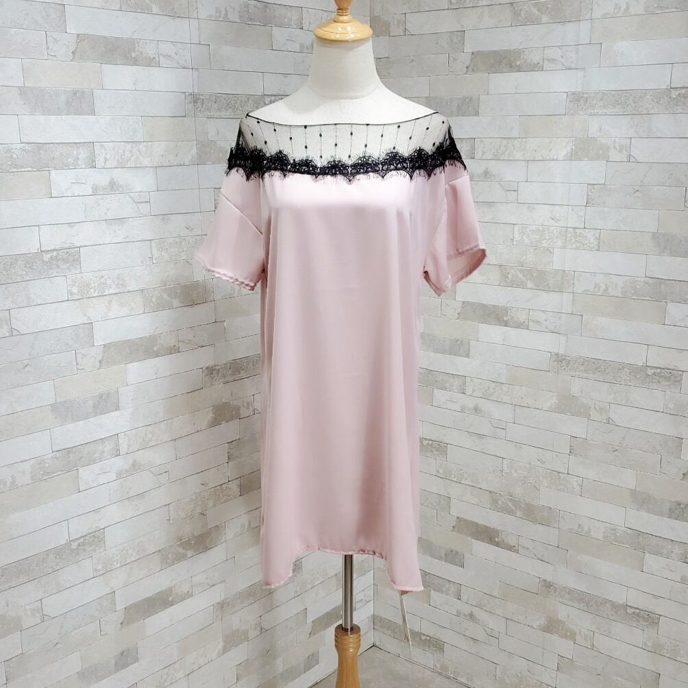 ボートネックとシアーデコルテでヘルシーな透け感が叶う無地のワンピースです♪