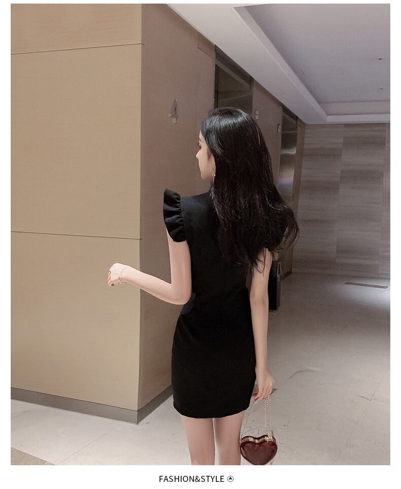シンプルなワンピにチャイナ要素をミックスしたミニ丈の無地ワンピースです♪