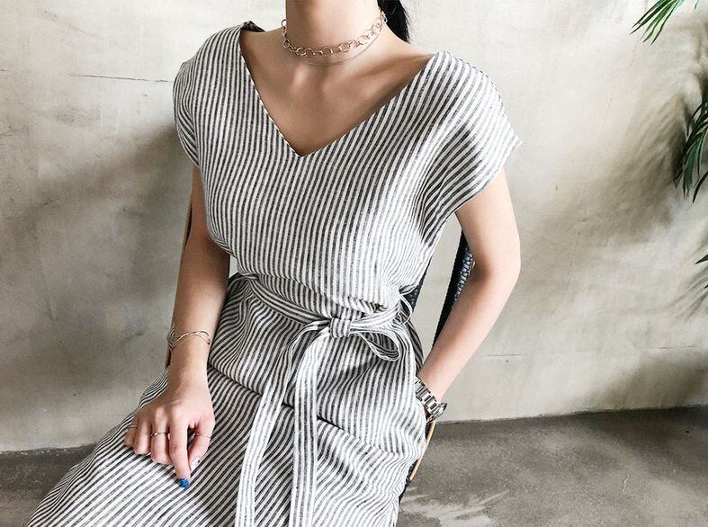 フレンチスリーブやVネックで綺麗に見せる効果もばっちりなカジュアルワンピです!