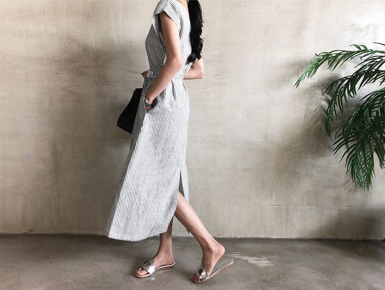 ストライプ柄を全面にあしらったロングワンピースのご紹介です♪