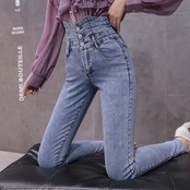 ハイウエストを位置づける3ボタンのウエストが特徴的◎