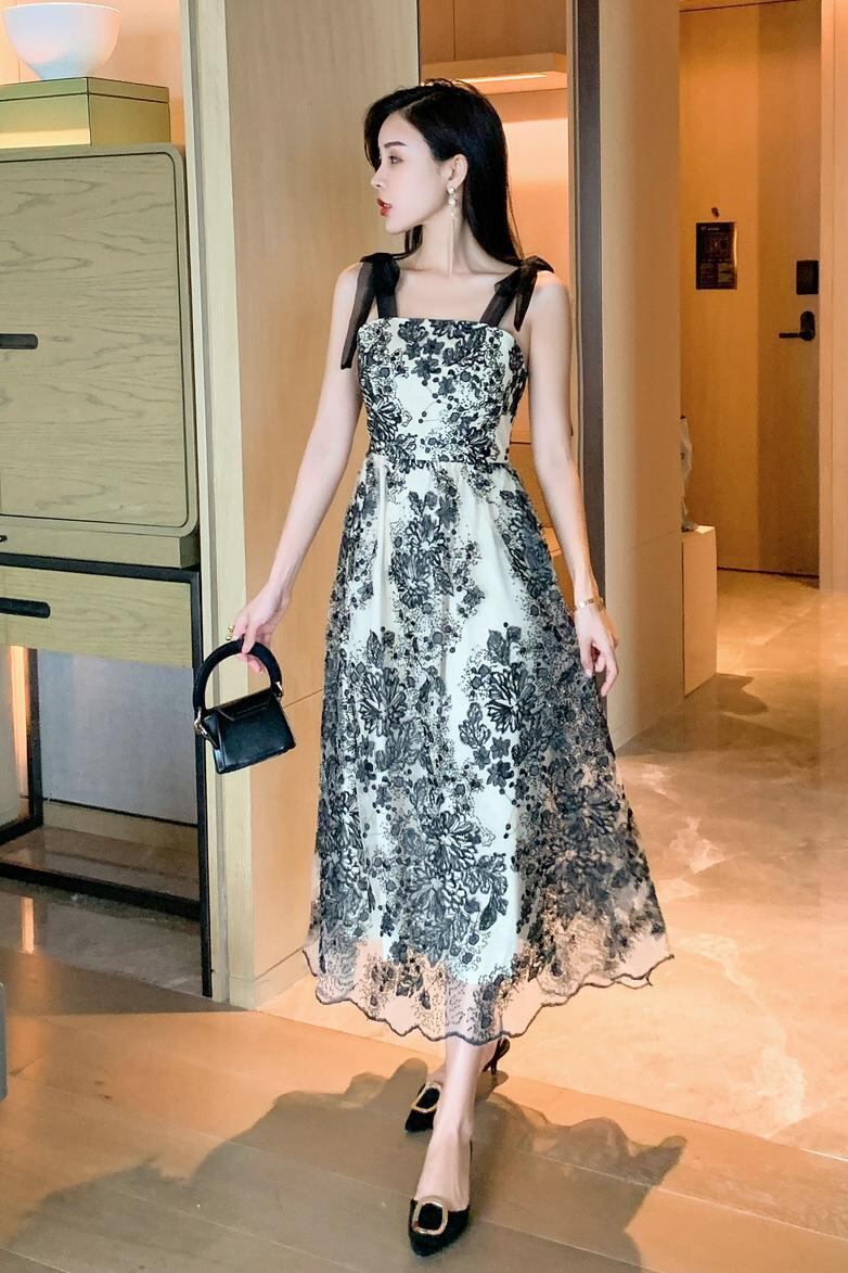 たっぷりの花柄とシアー感がエレガントなロング丈のワンピースです♪