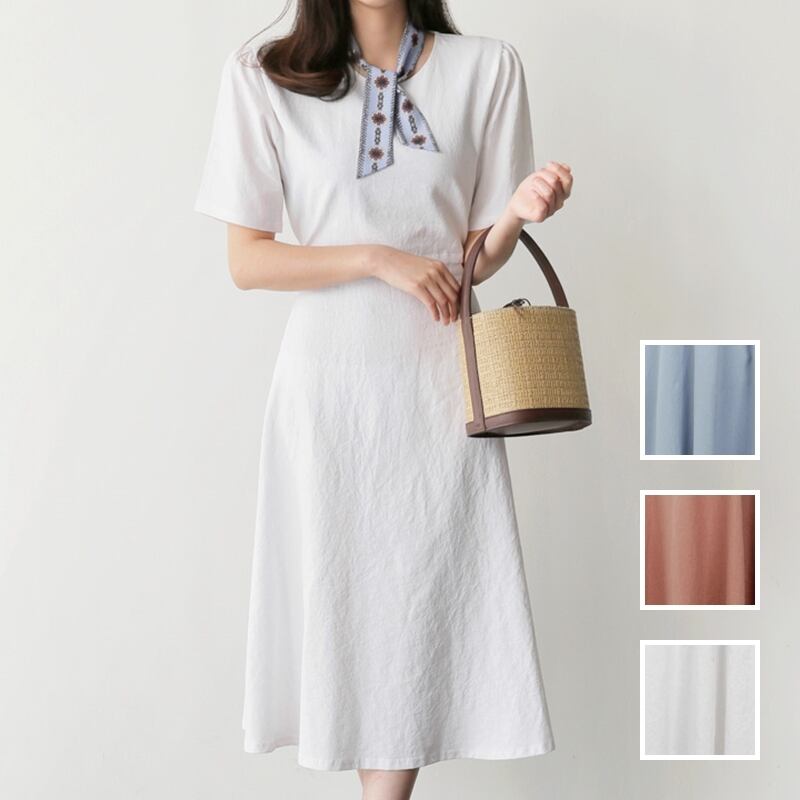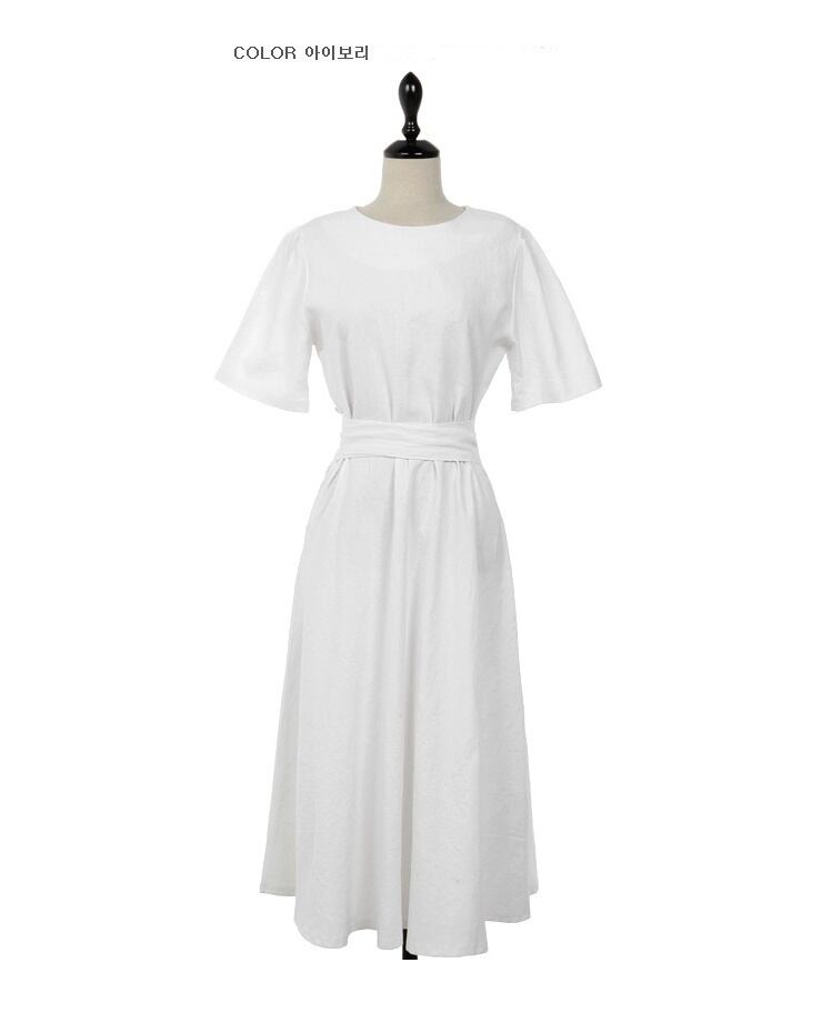 バックコンシャス&ウエストマークが叶うリボン付きのナチュラルなワンピース。