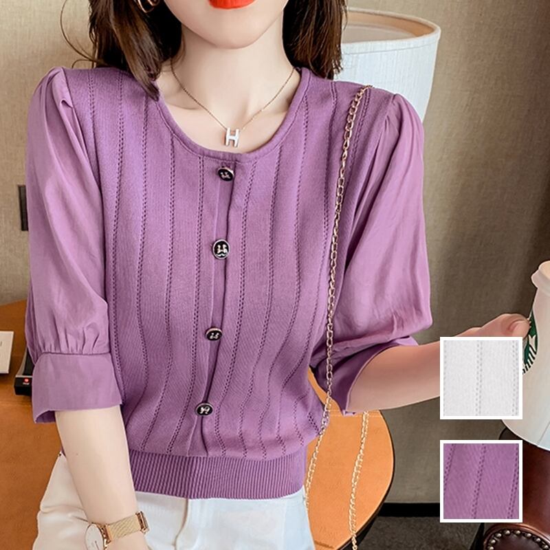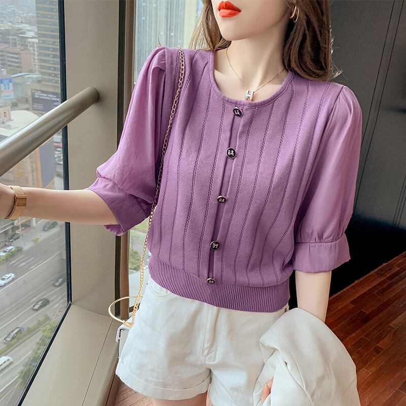ワンカラーで仕上げたクロップドニットトップスのご紹介です♪