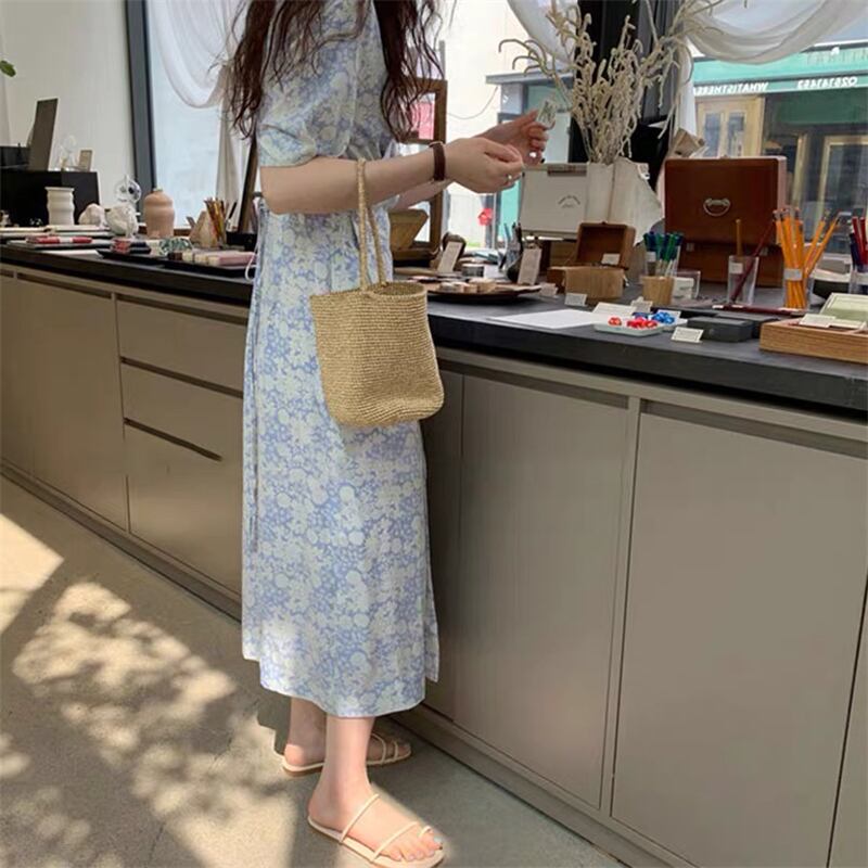 ブルー×ホワイトの淡い色合いと花柄が夏らしい涼やかな装いに。