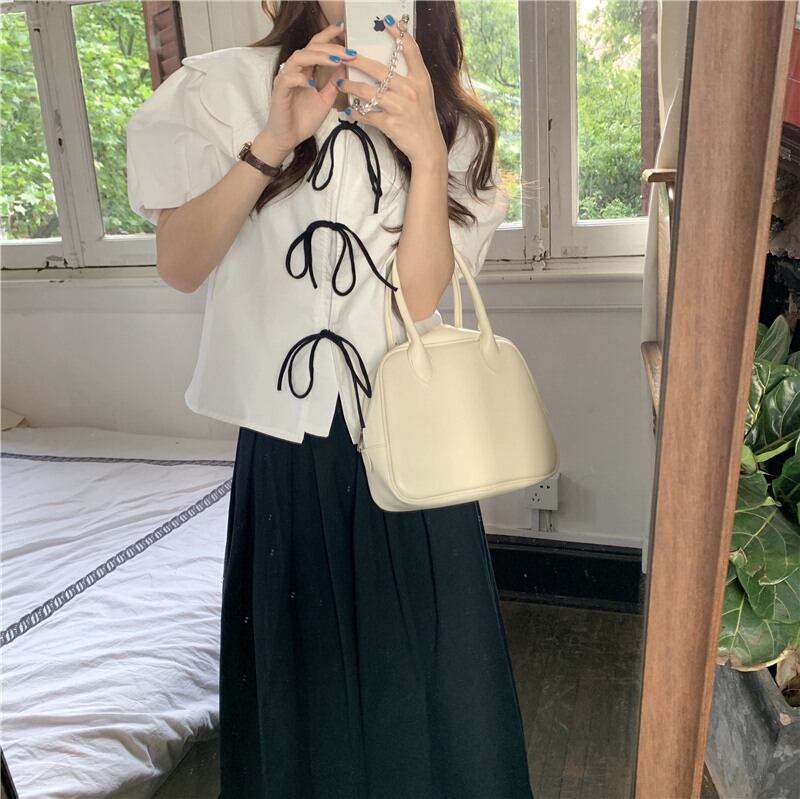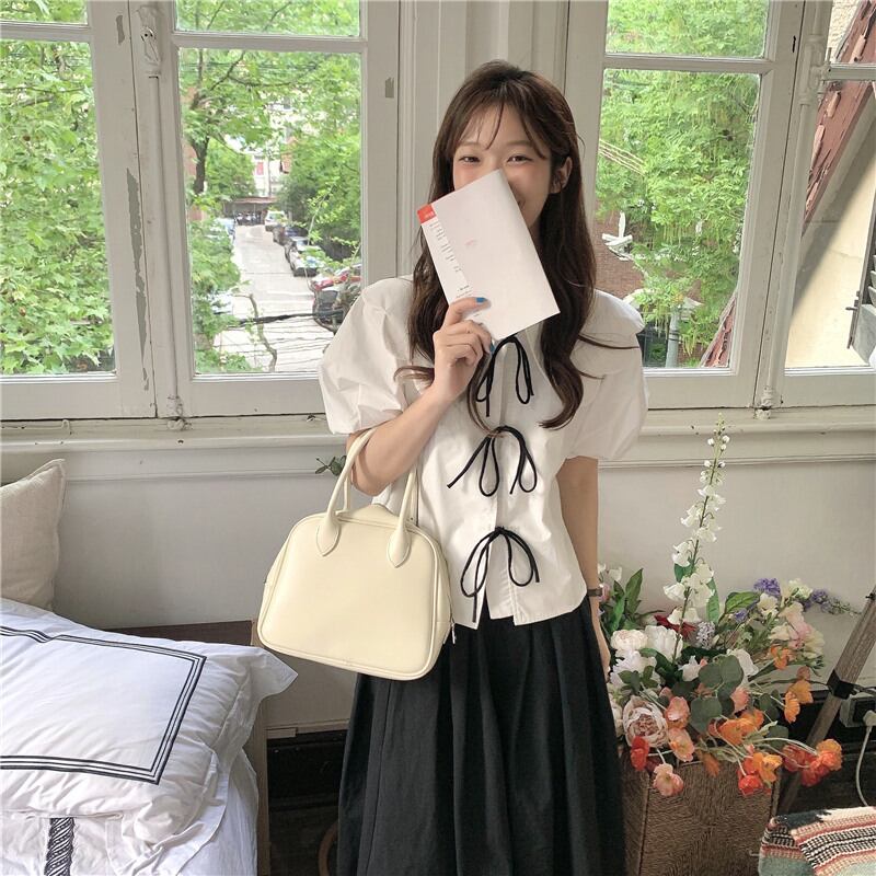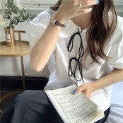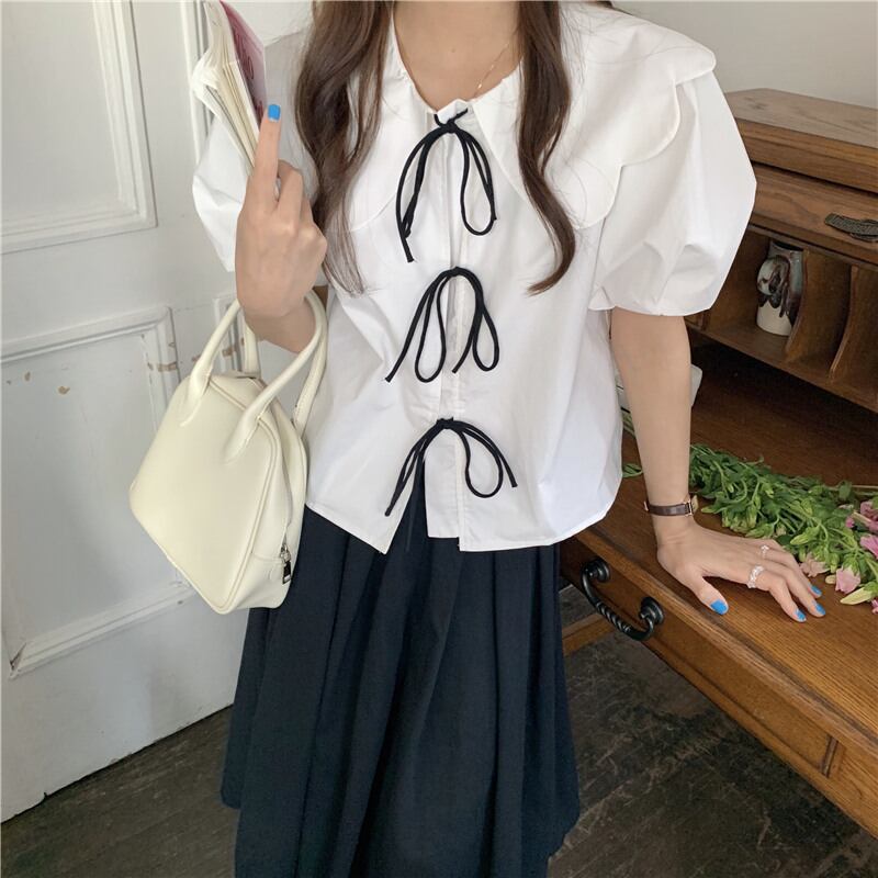 ビッグカラー&ボリューム袖にリボンタイを連ねたトップス♪