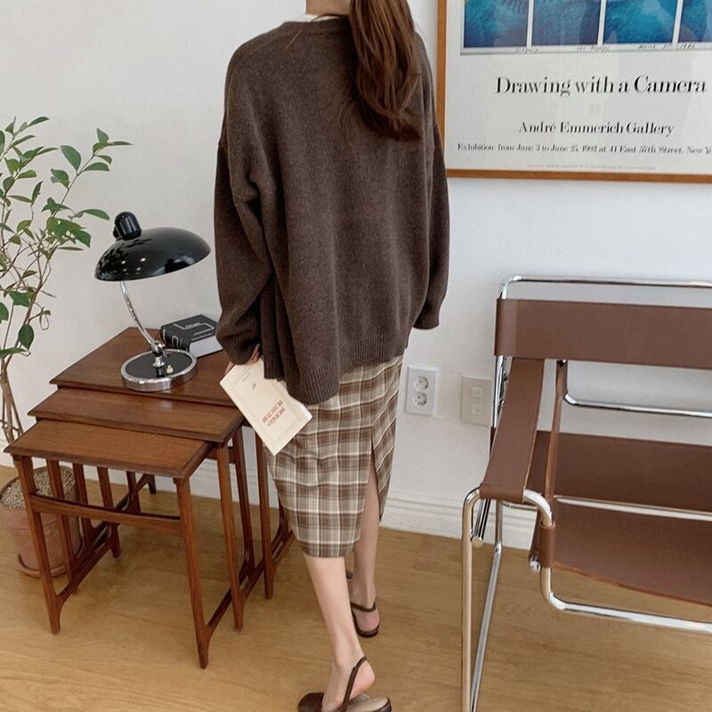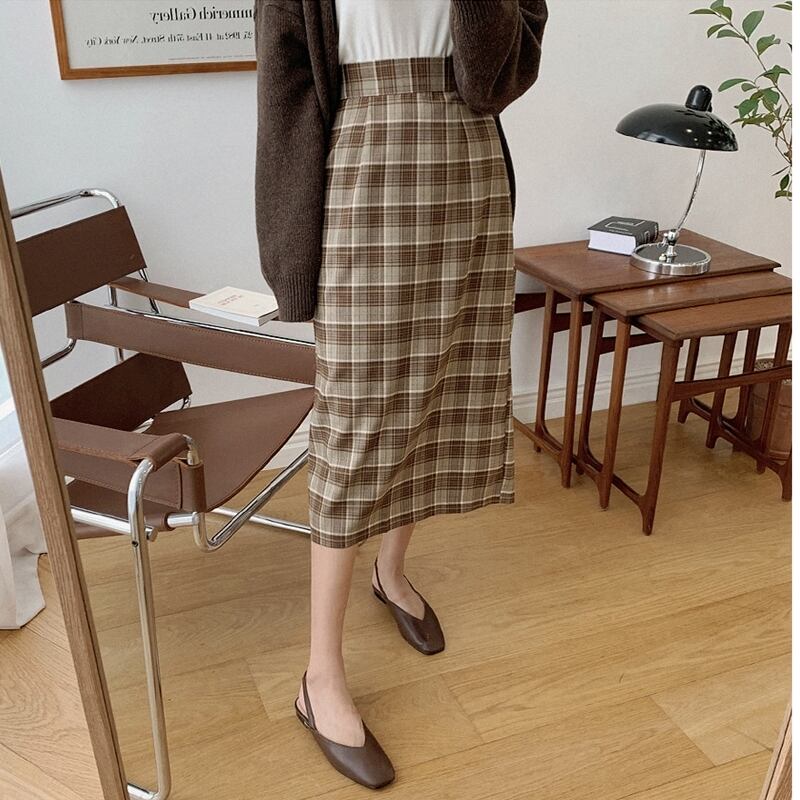 無地とチェック柄、ペンシルを取り入れたおすすめの2点セットです◎