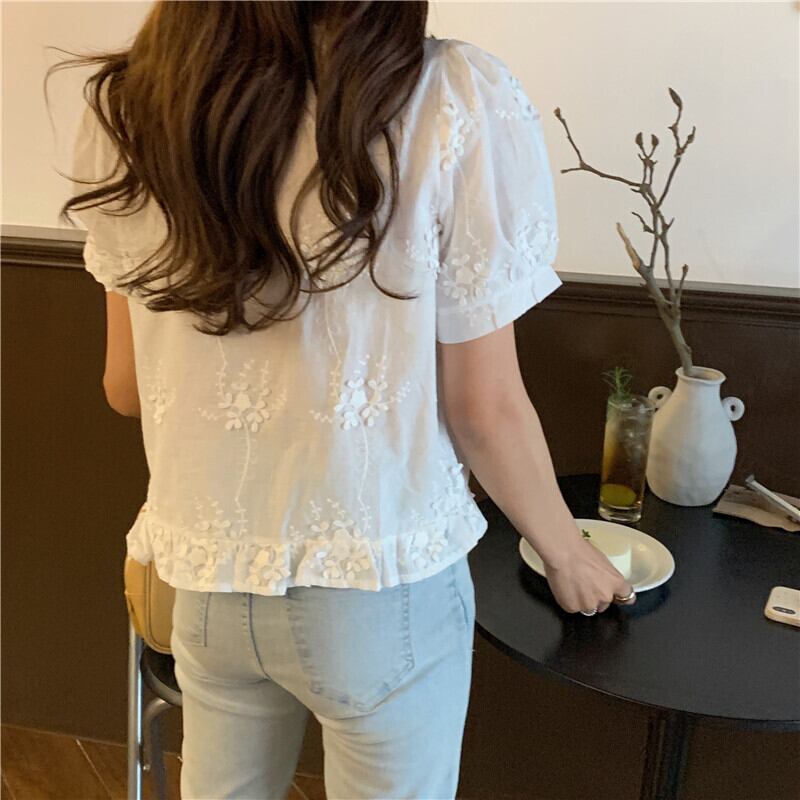 たっぷりの刺繍で花柄をあしらった半袖シャツのご紹介です♪
