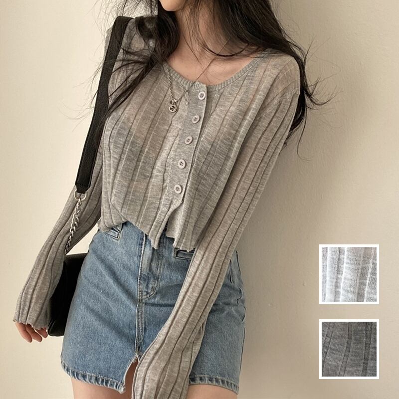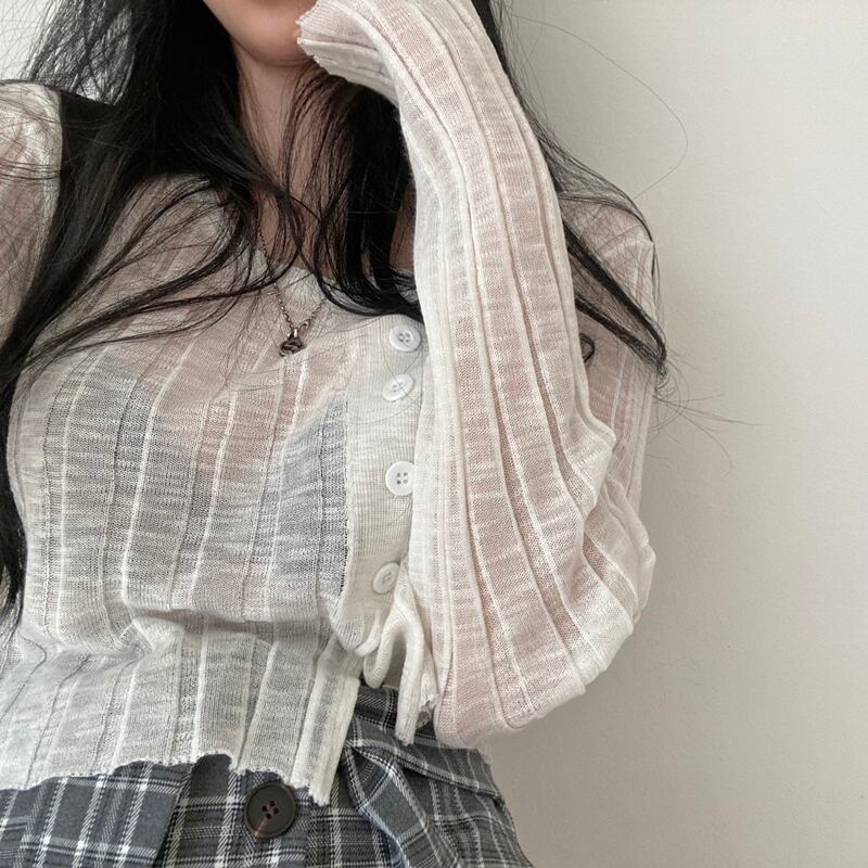 フロントがアシンメトリーになったストライプラインのカーディガンです♪
