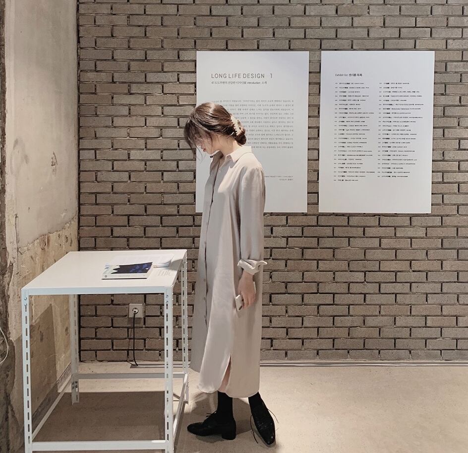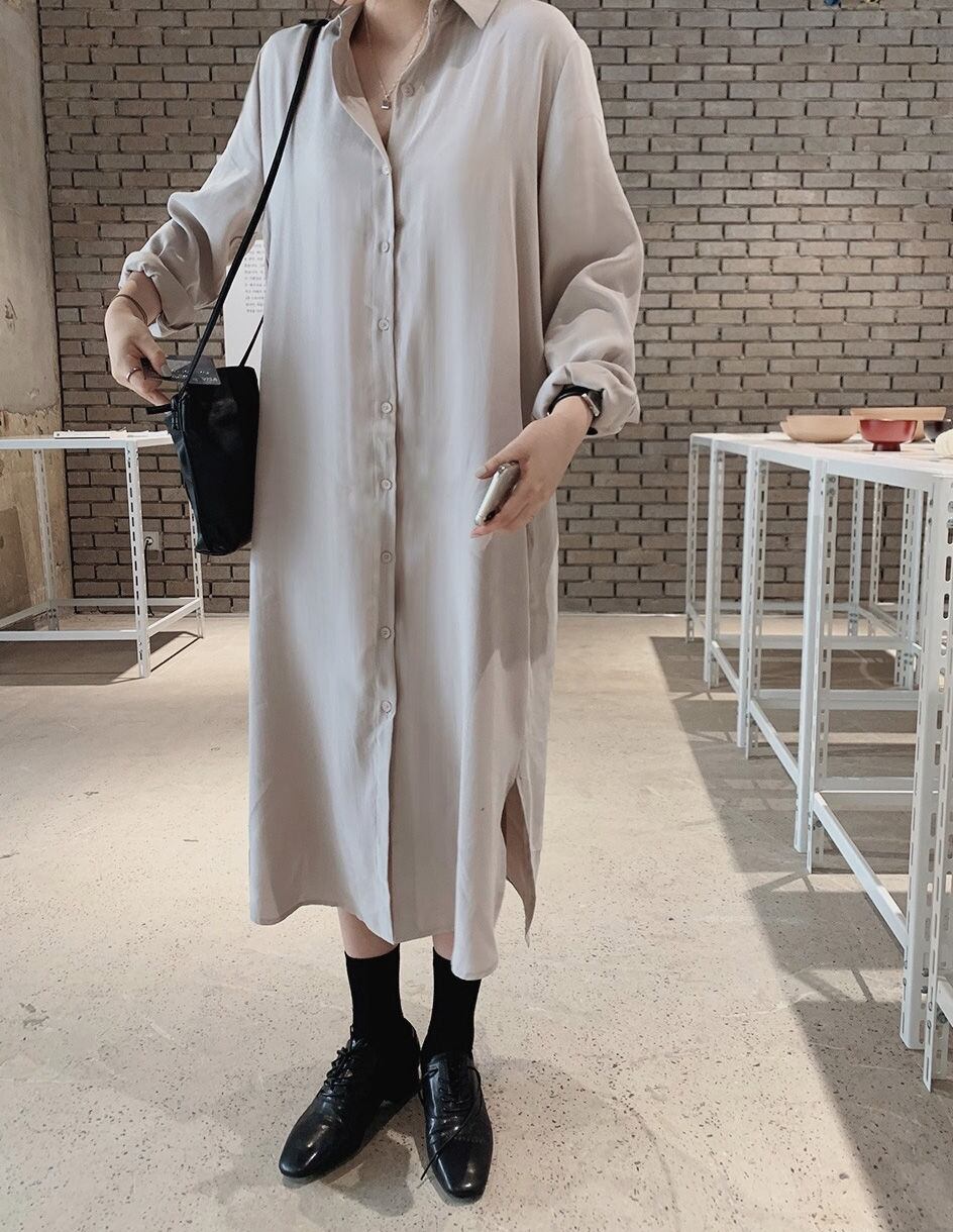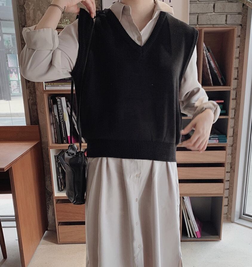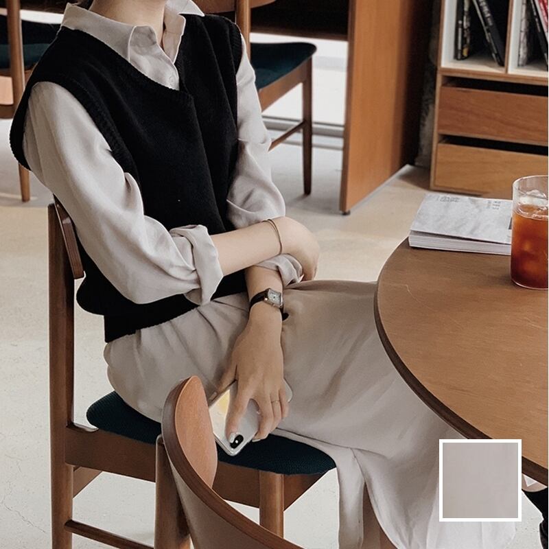 無駄のないシンプルな無地でまとめたシャツワンピースとベストの2点がセットに。