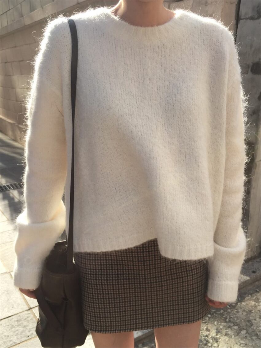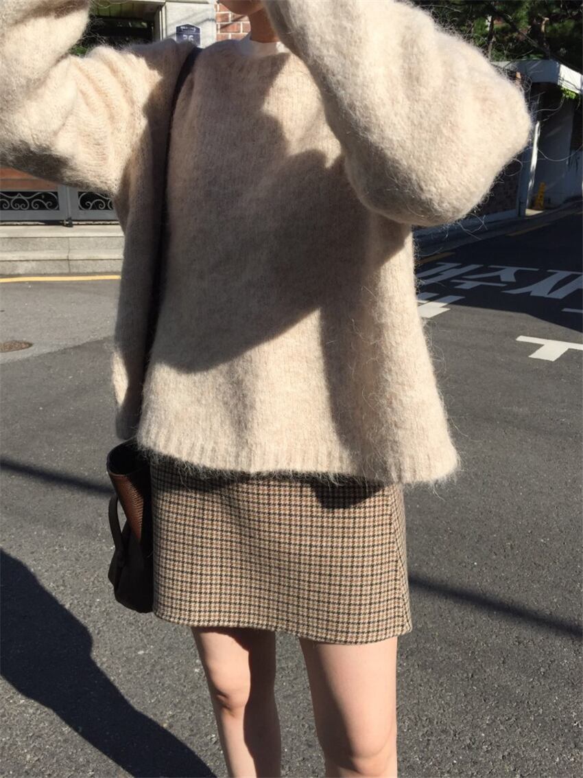 ふわふわで可愛く暖かいニットとタイトミニなスカートのセットアップです♪