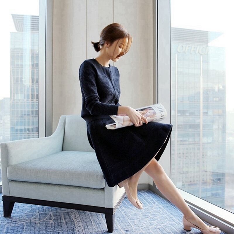 重たく見せないひざ丈が嬉しいエレガントな2点セットです!