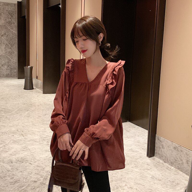 これからの季節にぴったりな秋カラーを取り入れたロングブラウスです♪