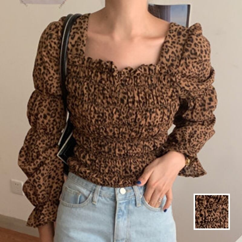 スクエアネックで抜け感を出してくれるアニマル柄のブラウスが登場☆
