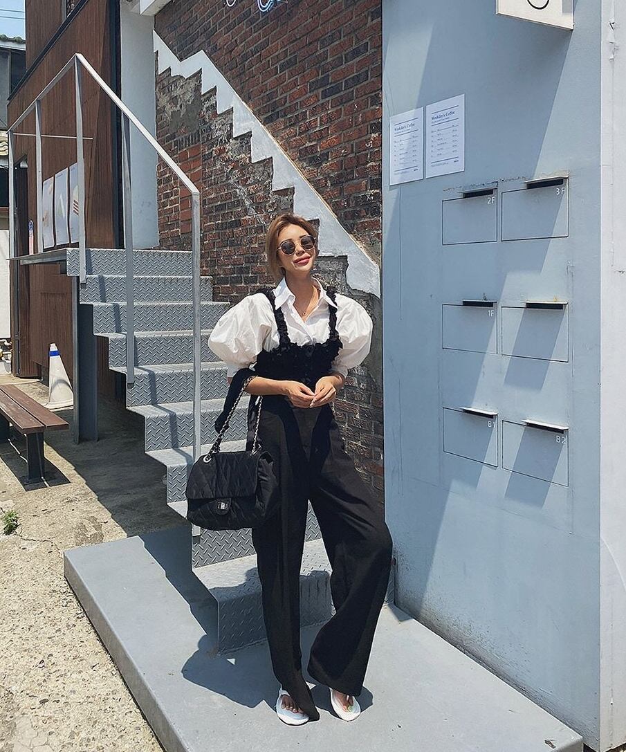 肩掛けできる長さのショルダーにはチェーンをミックスしてストリートライクに。