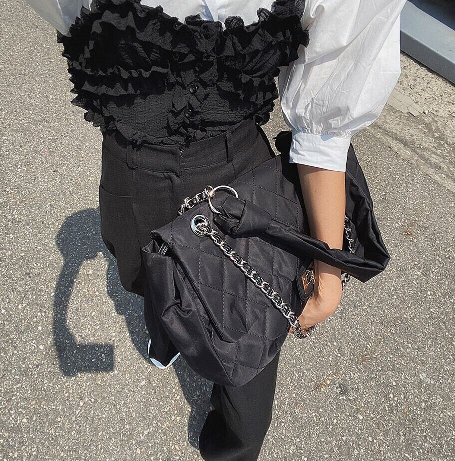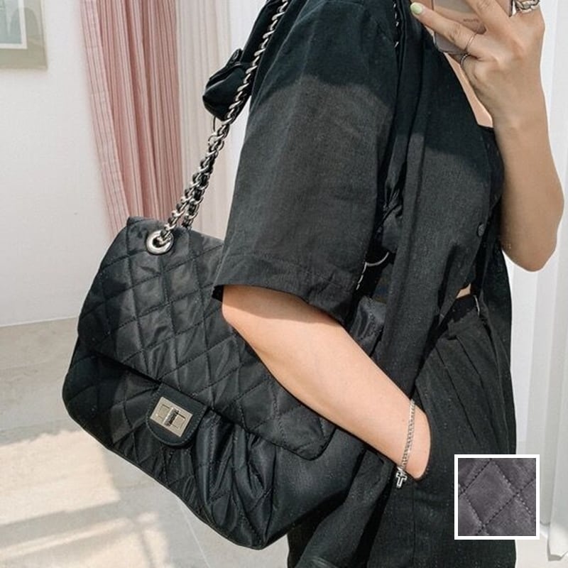 ワントーンブラックをキルティングでラグジュアリーにまとめたショルダーバッグのご紹介です♪