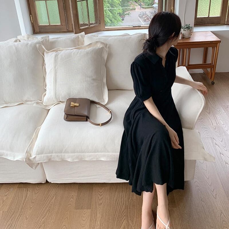 ハイウエスト位置でメリハリをつけたロングワンピースが登場しました。