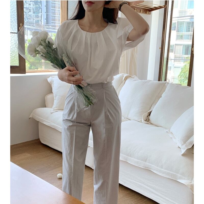 パフスリーブのふわっとしたシルエットでトレンドライクな印象に。