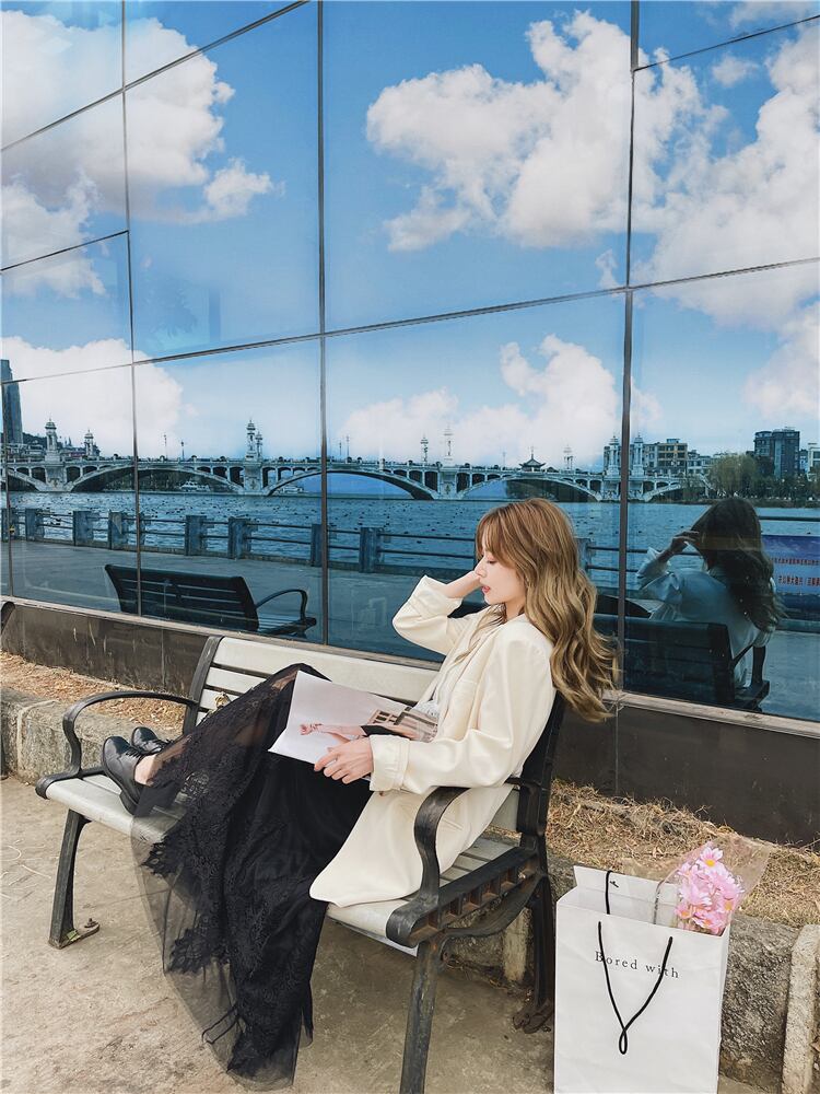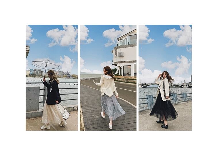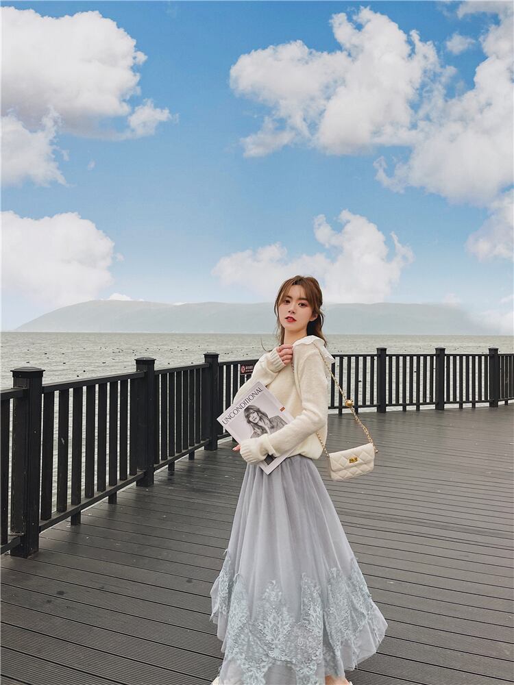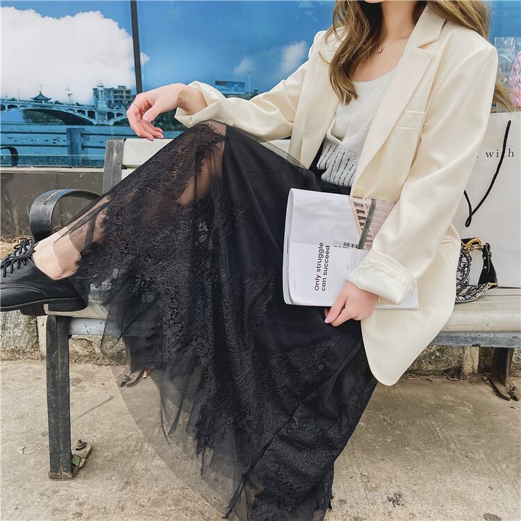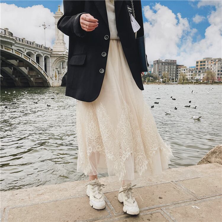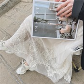 裾にレースを取り入れたロングスカートのご紹介です。