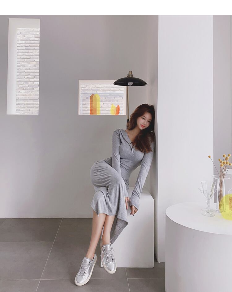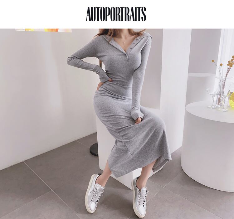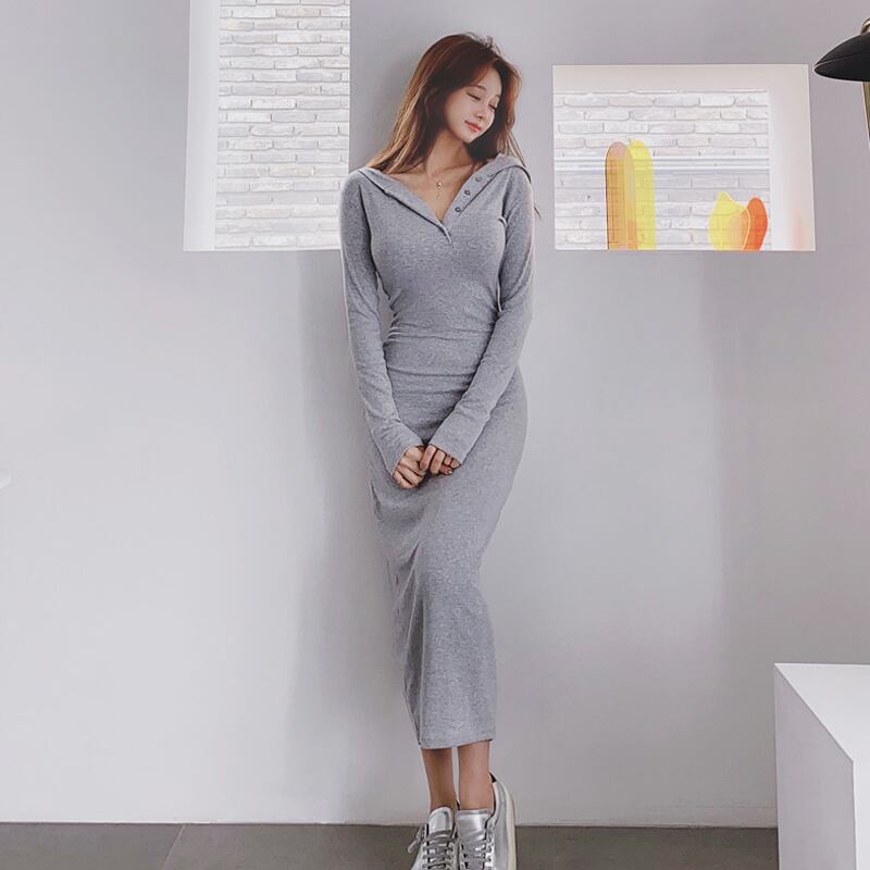 【即納品】タイトシルエット 無地 パーカー カジュアルワンピース