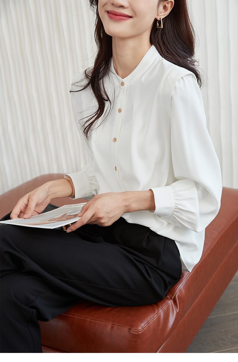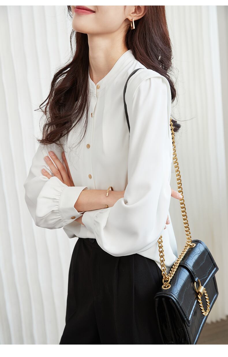 バンドカラーでほどよく露出を抑えた上品なブラウスのご紹介です♪