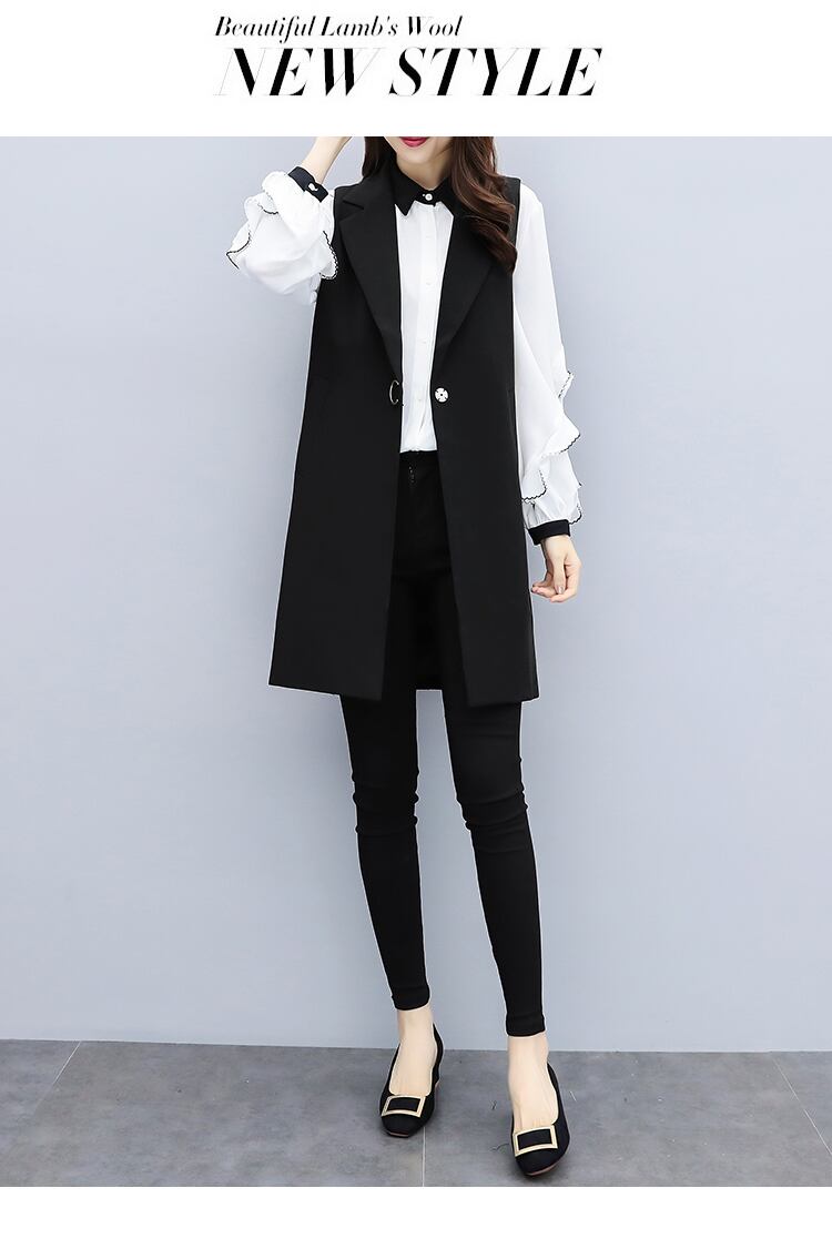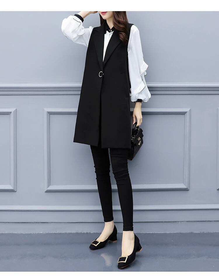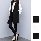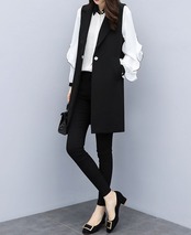 ロングベストはメリハリをつけるブラックでまとめたスタイルカバーができる一枚です!