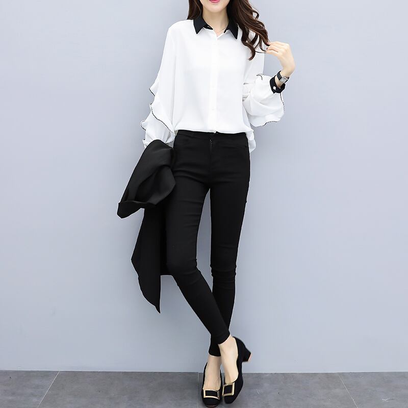 ステッチラインがアクセントになる動きのあるブラウスでワザありコーデに♪