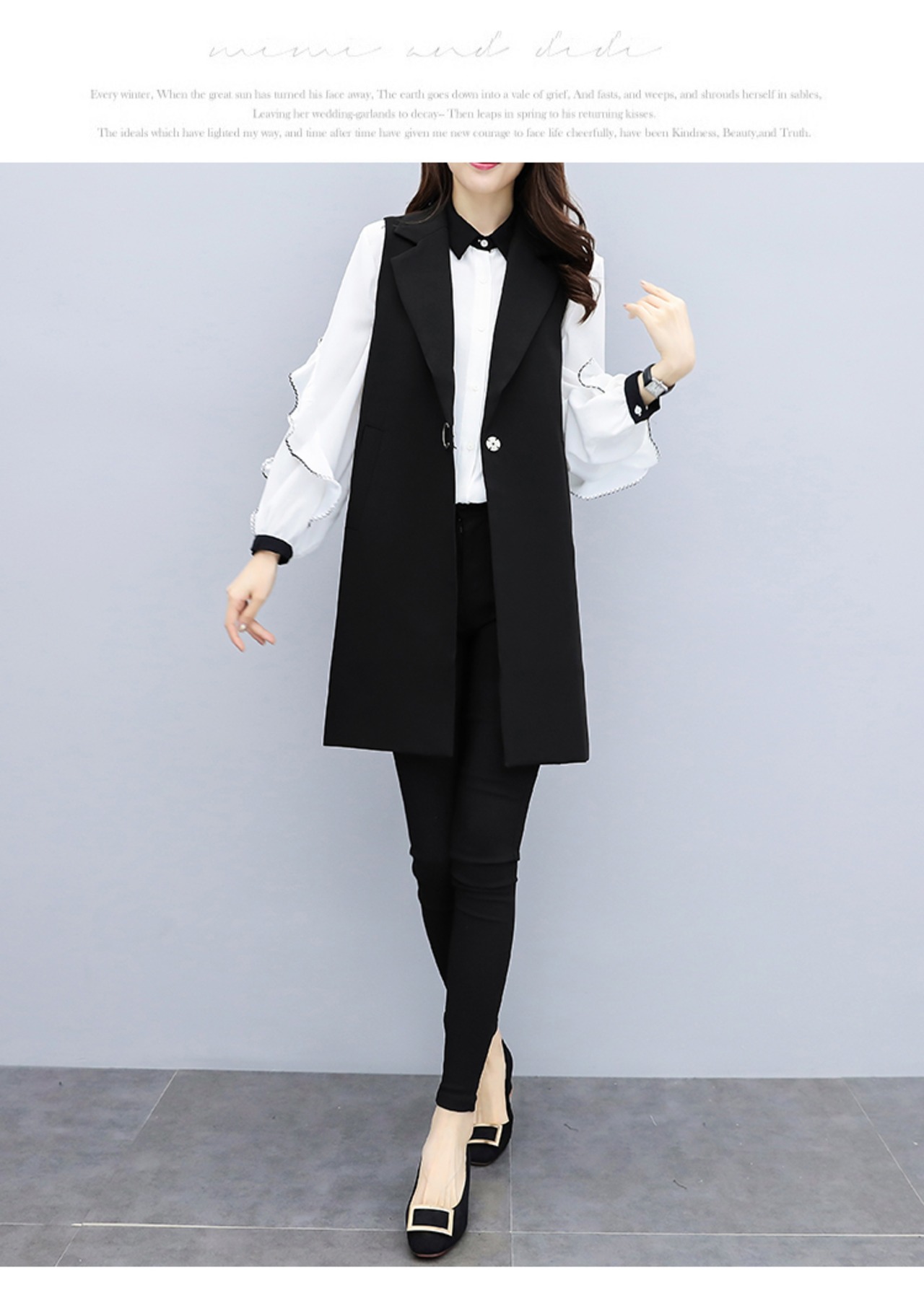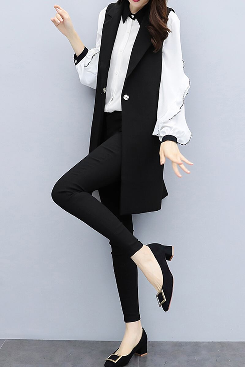 ワンセットで大人っぽさをアピールするブラウスとベストのセットアップ◎