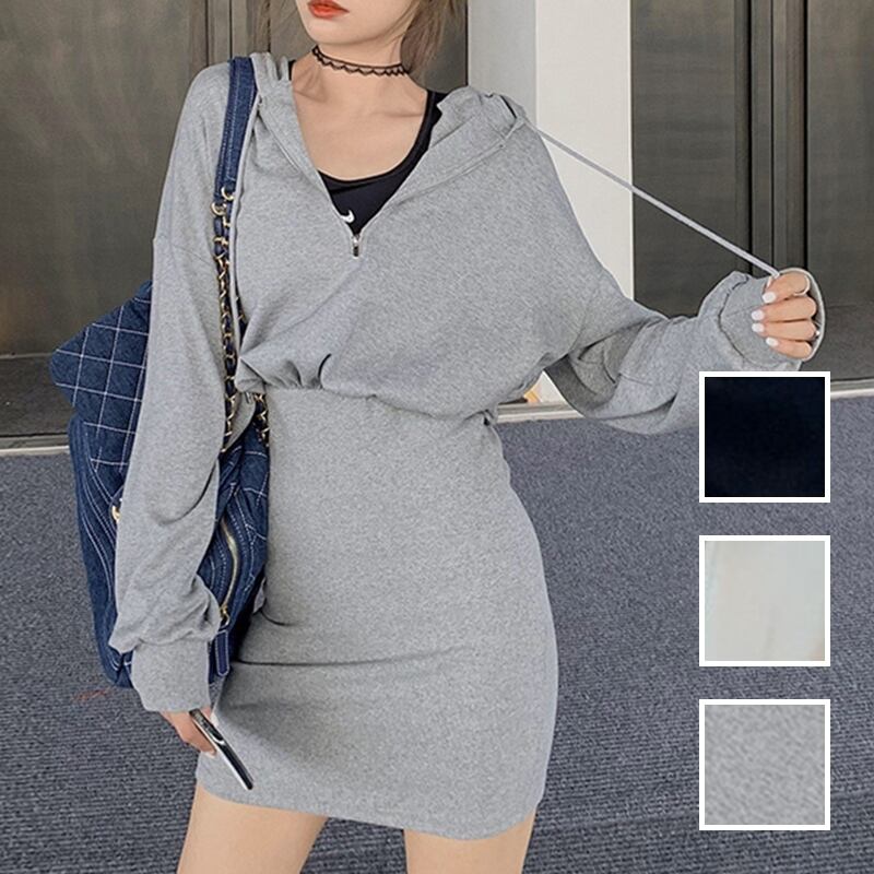 フーディのカジュアルさとタイトミニのオンナっぽさがマッチしたカジュアルワンピース♪