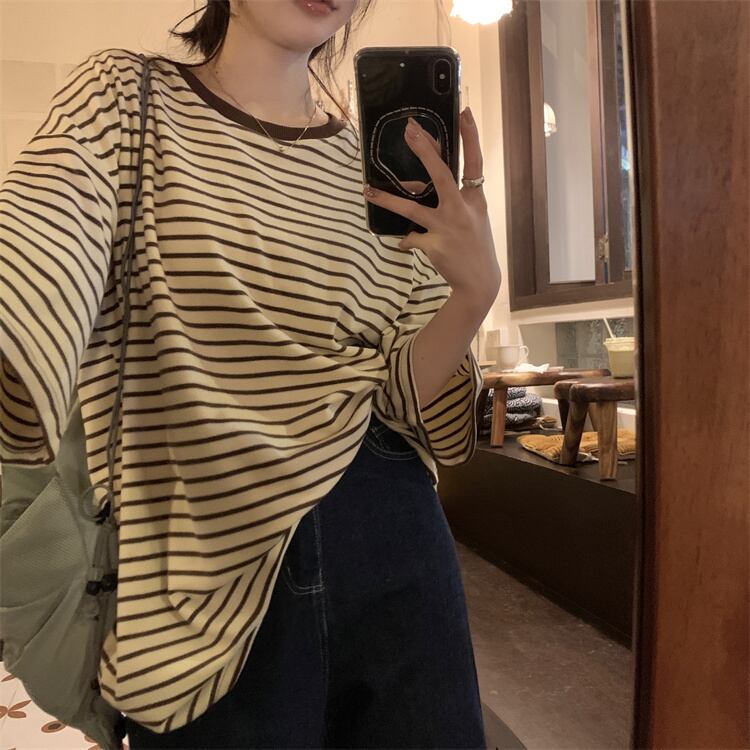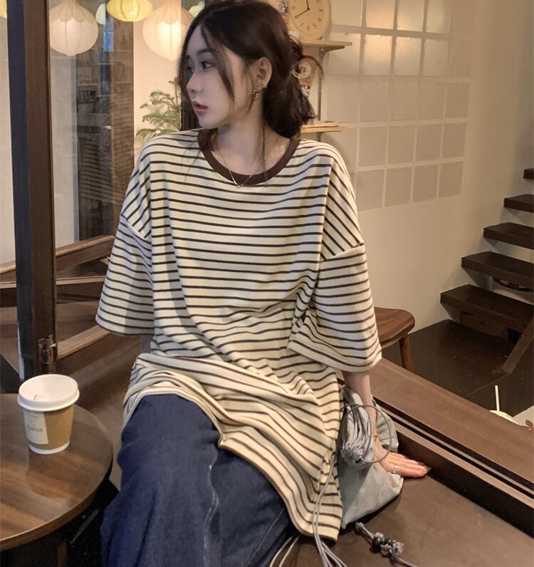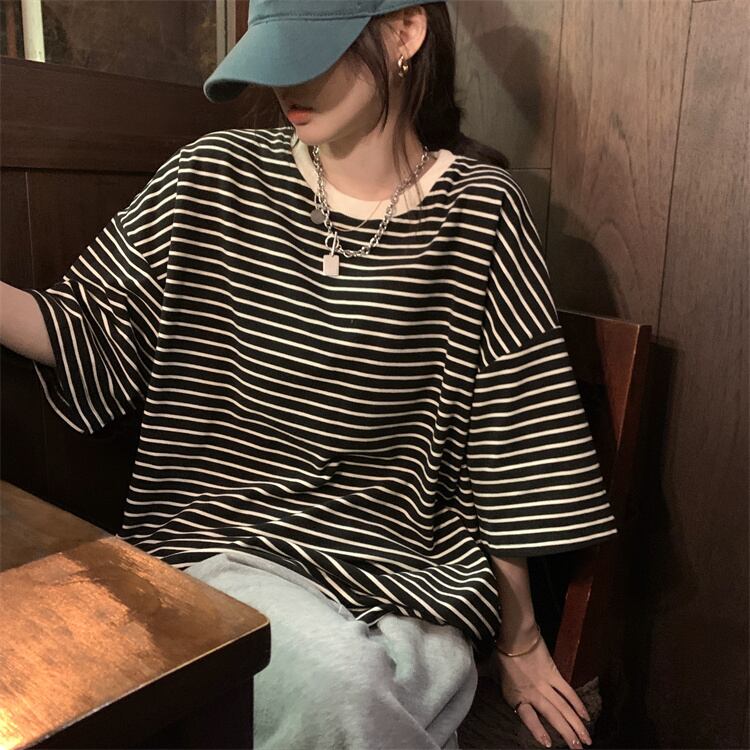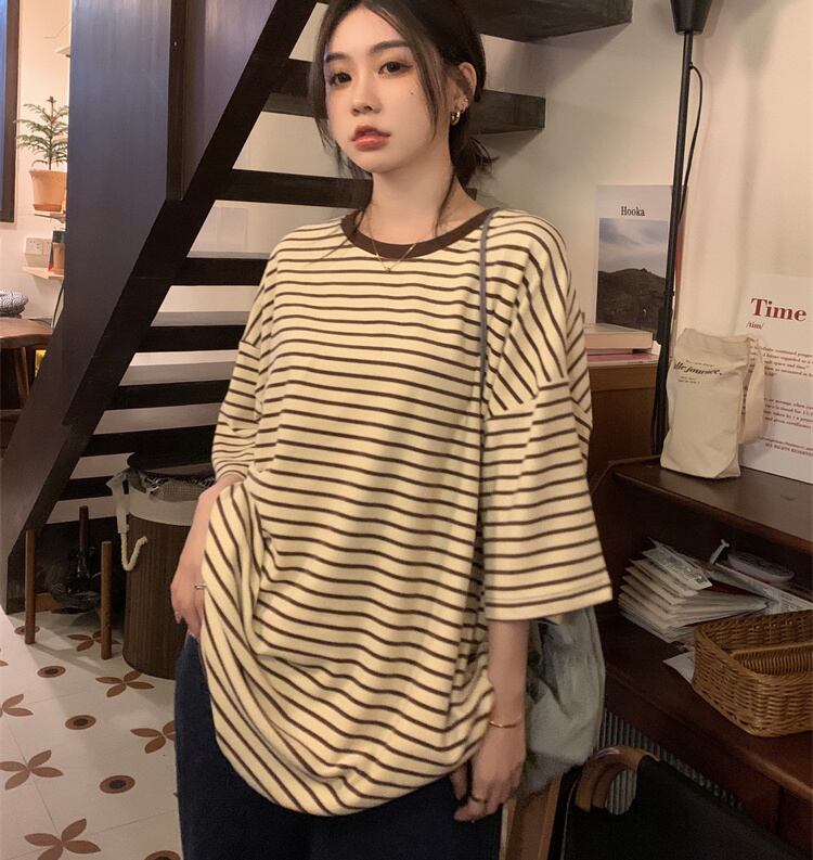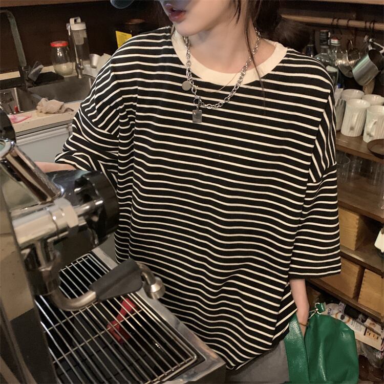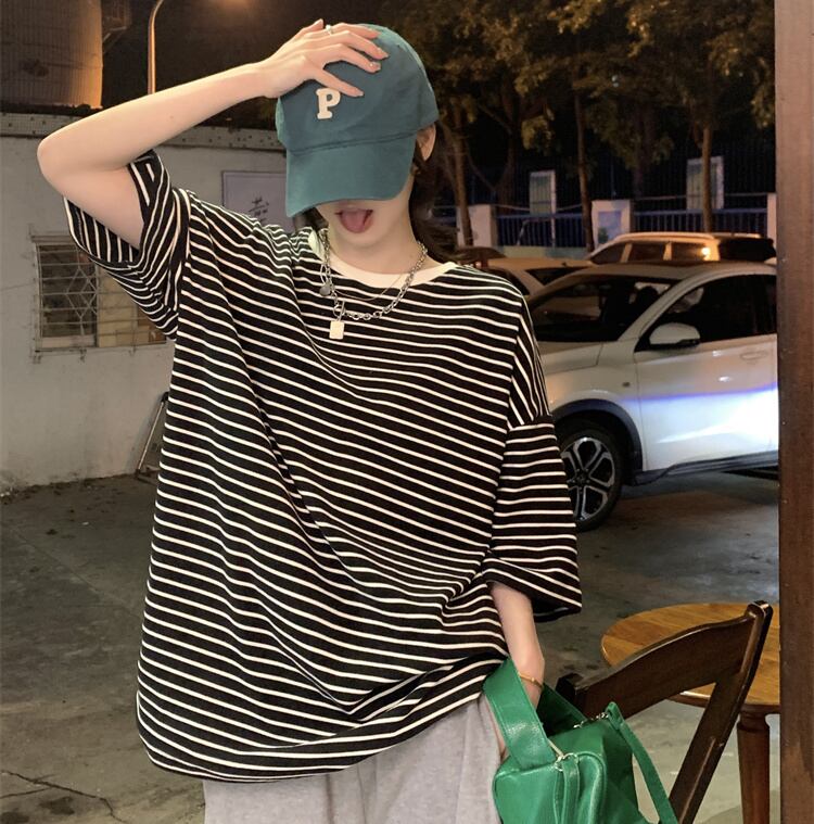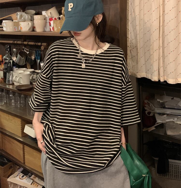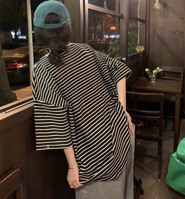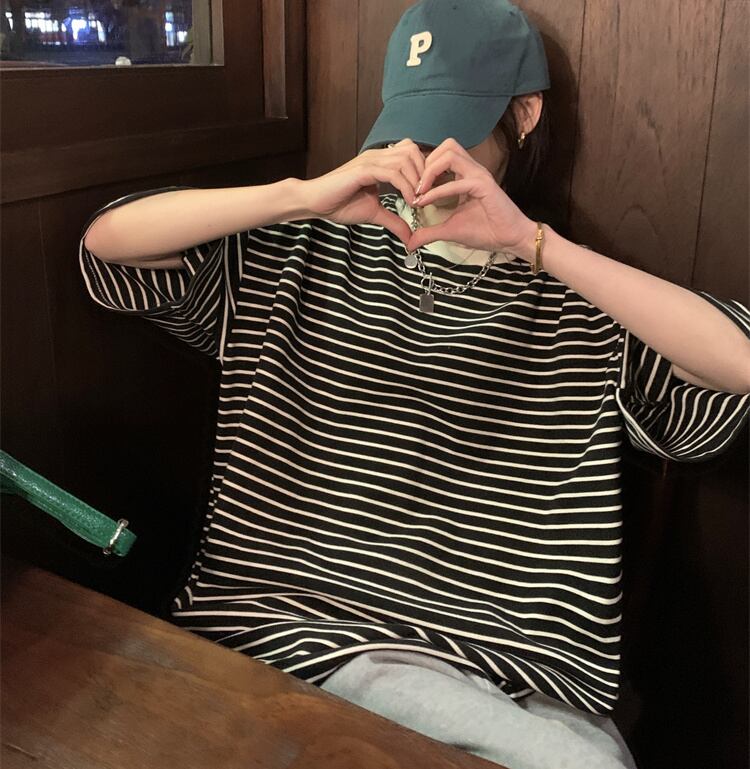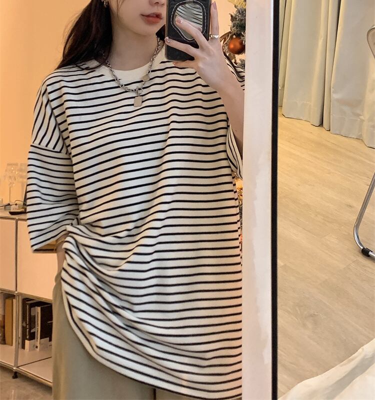 細めのストライプをたっぷりあしらったオーバーサイズなTシャツのご紹介です!