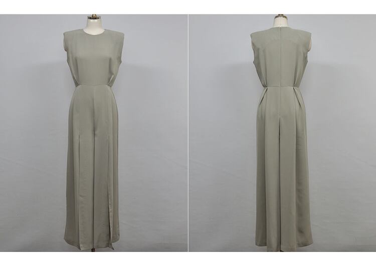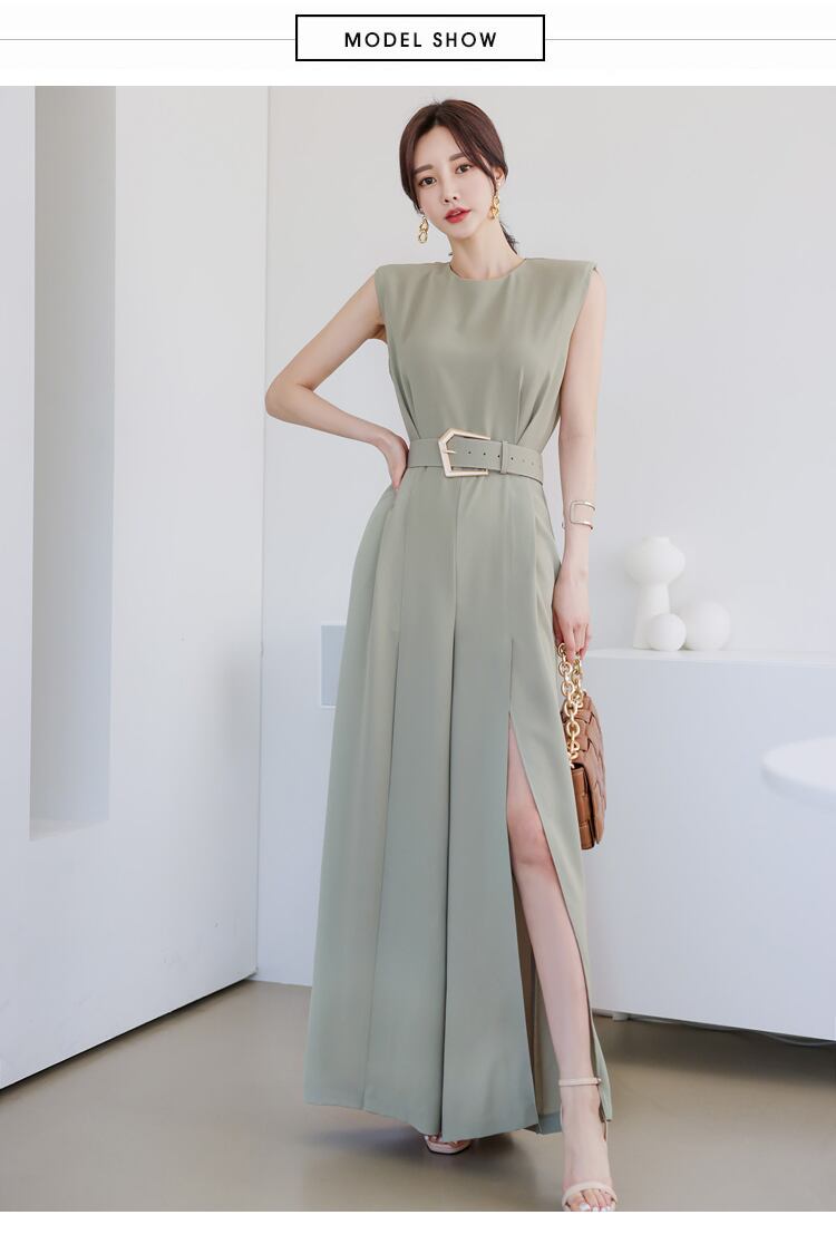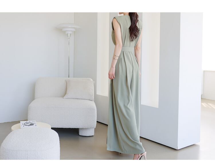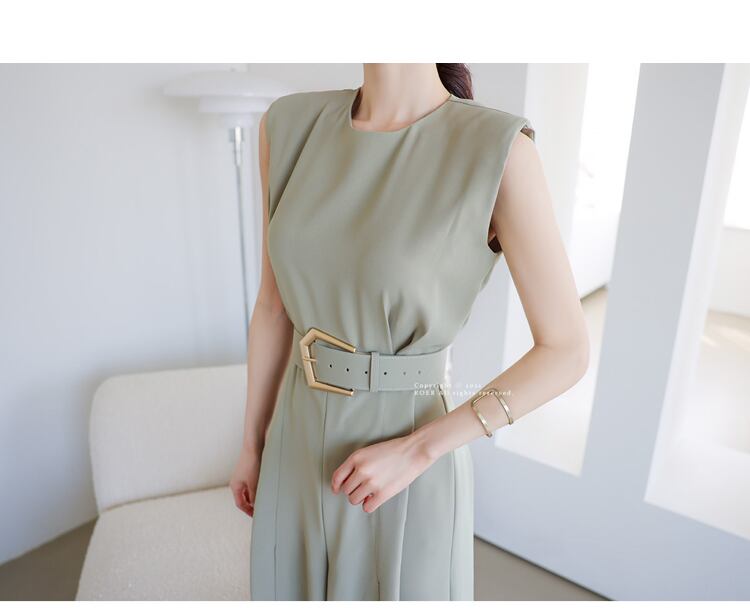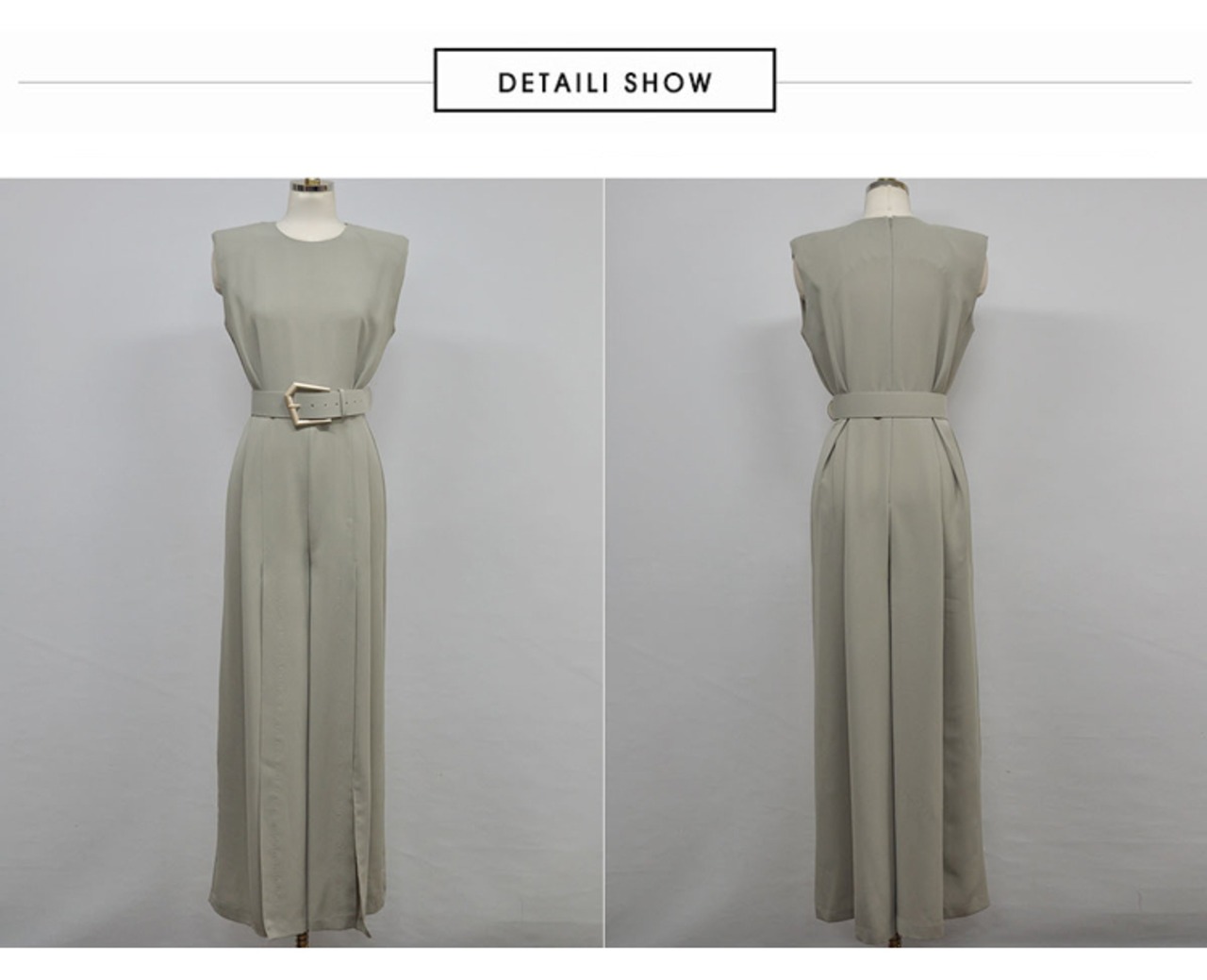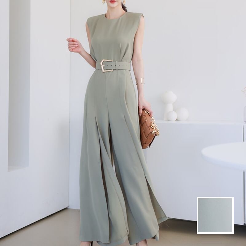 シンプルな無地にベルトがアクセントになったマキシ丈のオールインワンが登場しました!