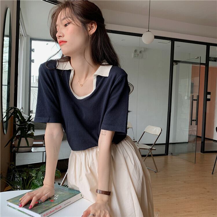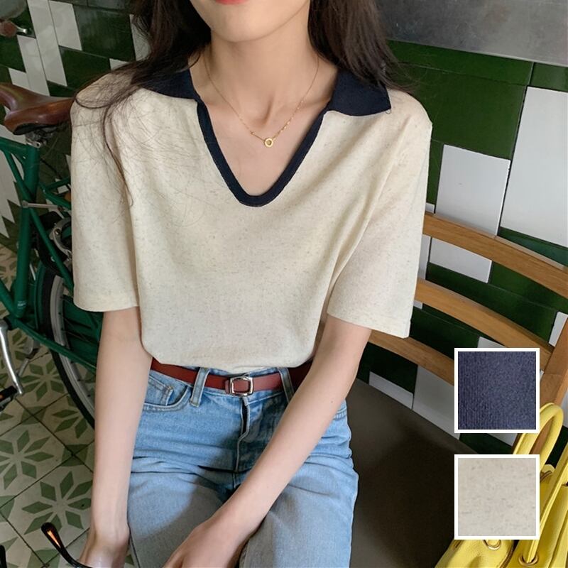 バイカラー配色を取り入れた半袖のカジュアルカットソーが登場しました♪