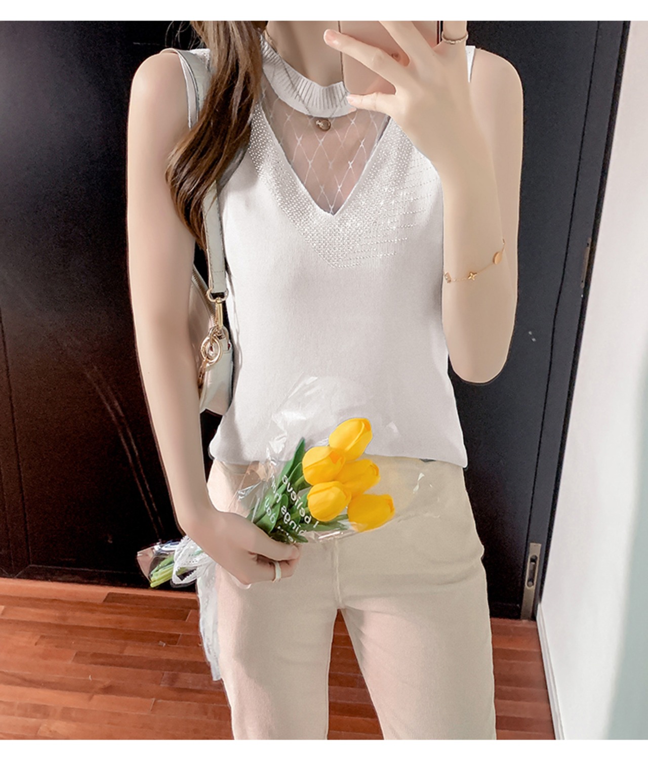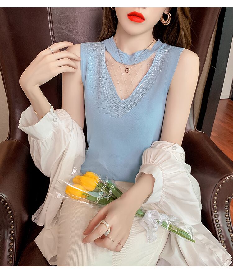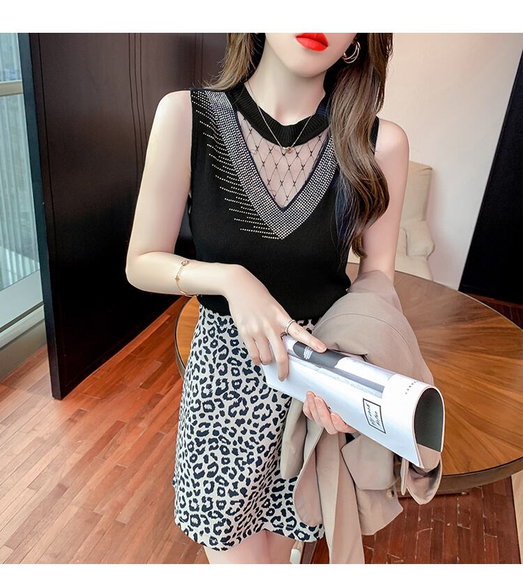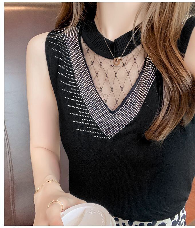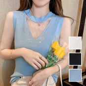 デコルテ&ネックラインをシースルーパーツに切り替えたノースリーブトップス♪