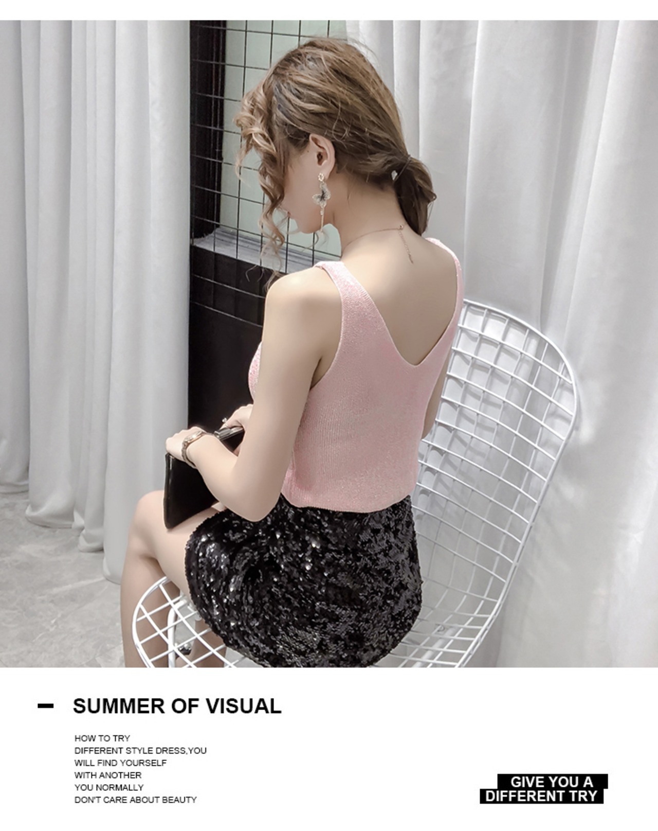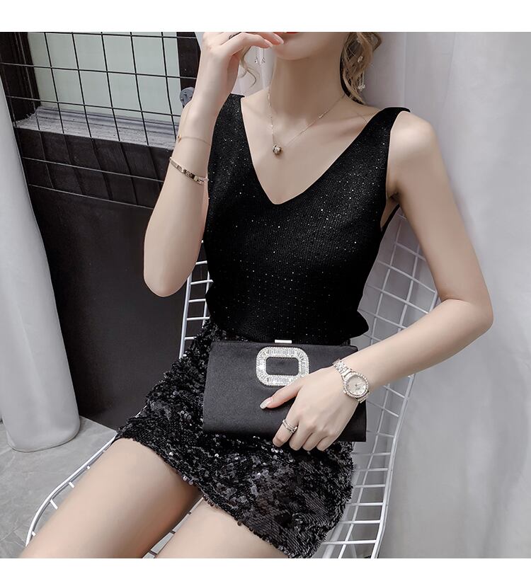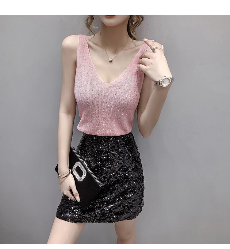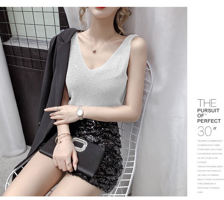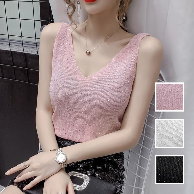 Vネックノースリーブで涼し気に一枚でもトップスとしてさらっと着こなせます。