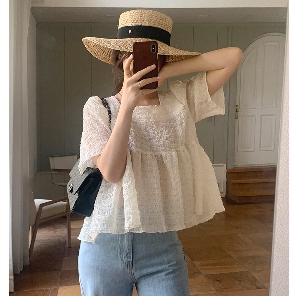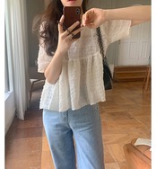 スクエアネックのガーリーさにペプラムを合わせたワザありなデザイン♪