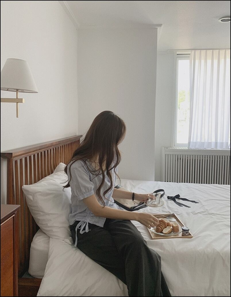 裾部分にあしらったシャーリングリボンタイがポイント。