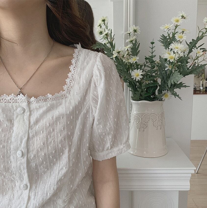 レースを取り入れたネックラインなど細部にまでしっかりこだわったトップスです!