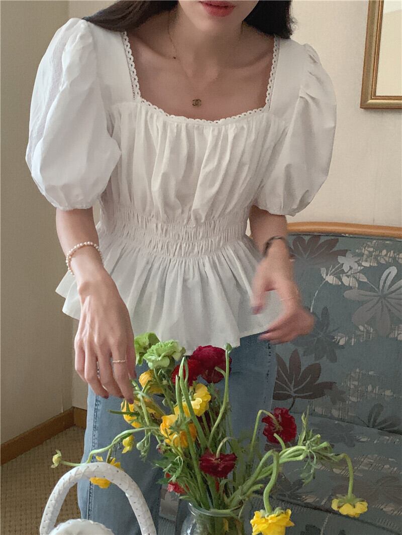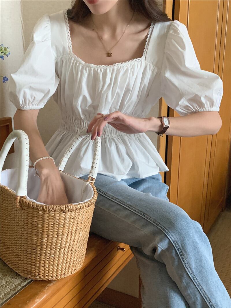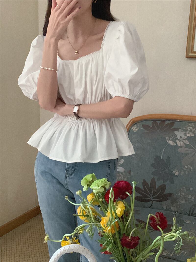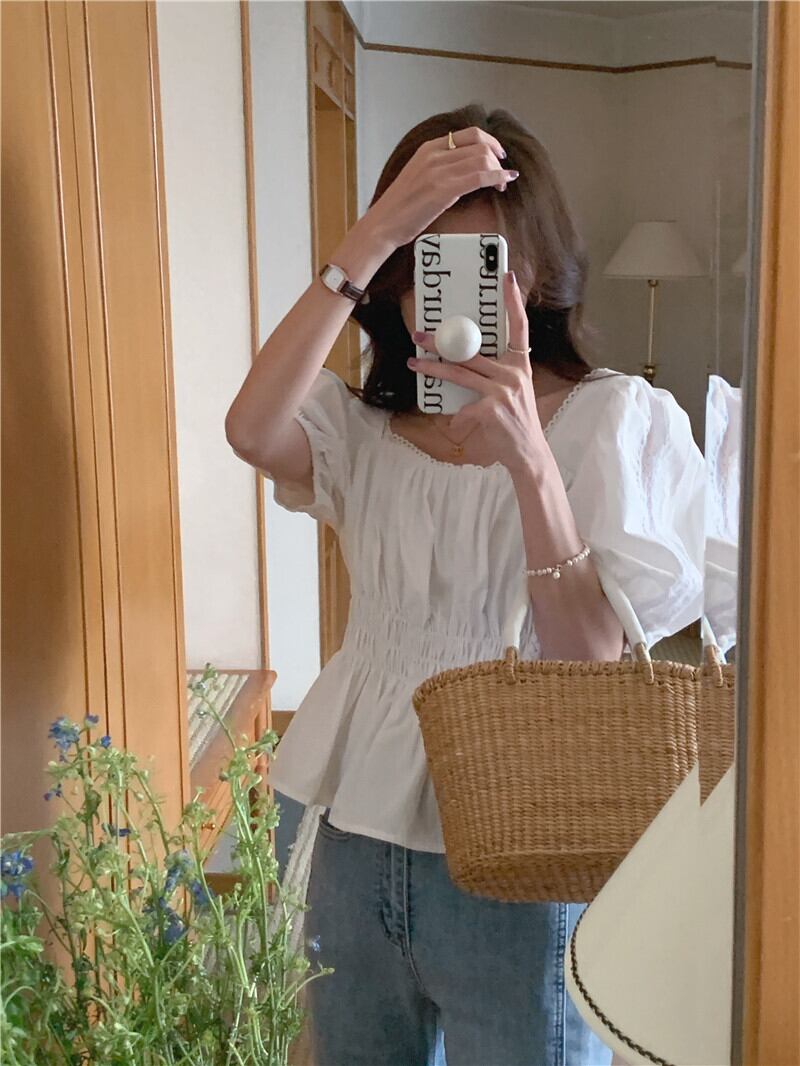 パフスリーブを取り入れたふんわりシルエットが可愛いトップスです!